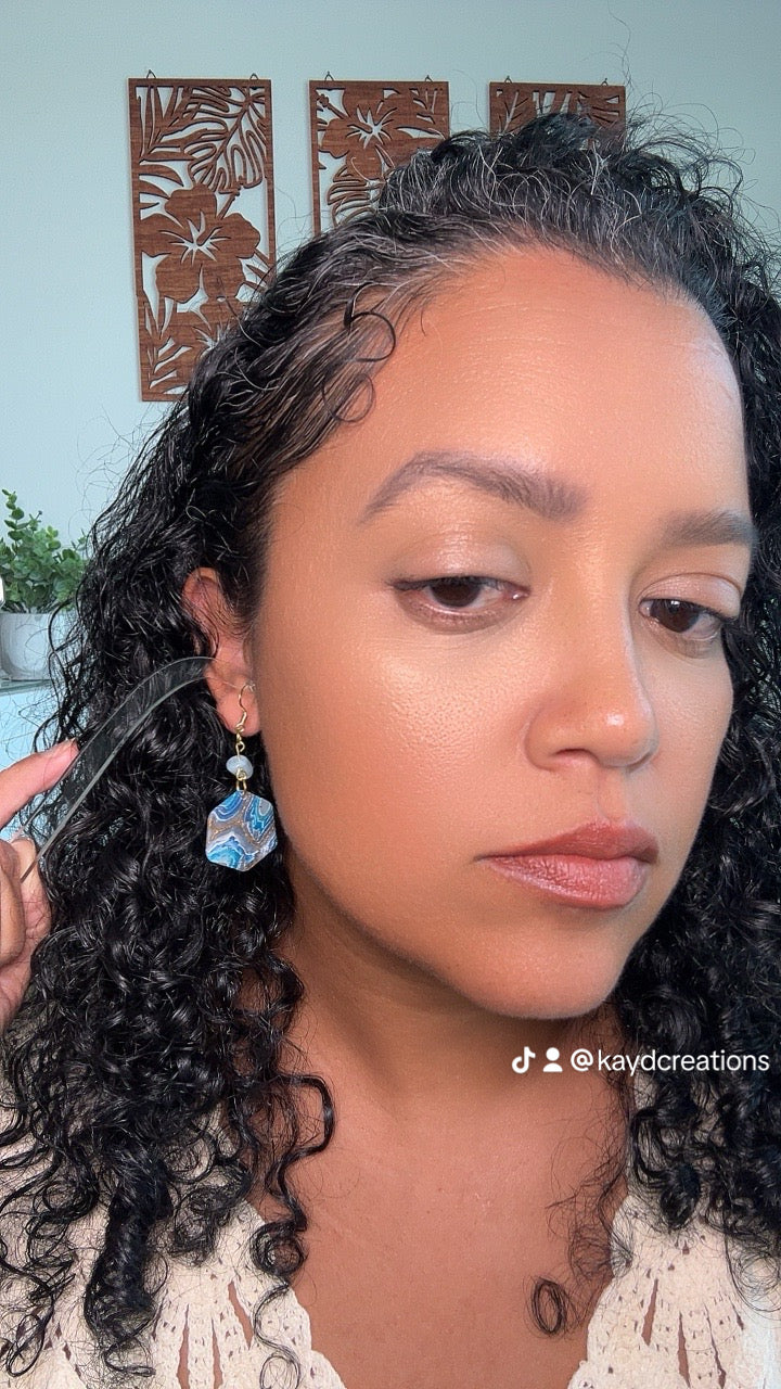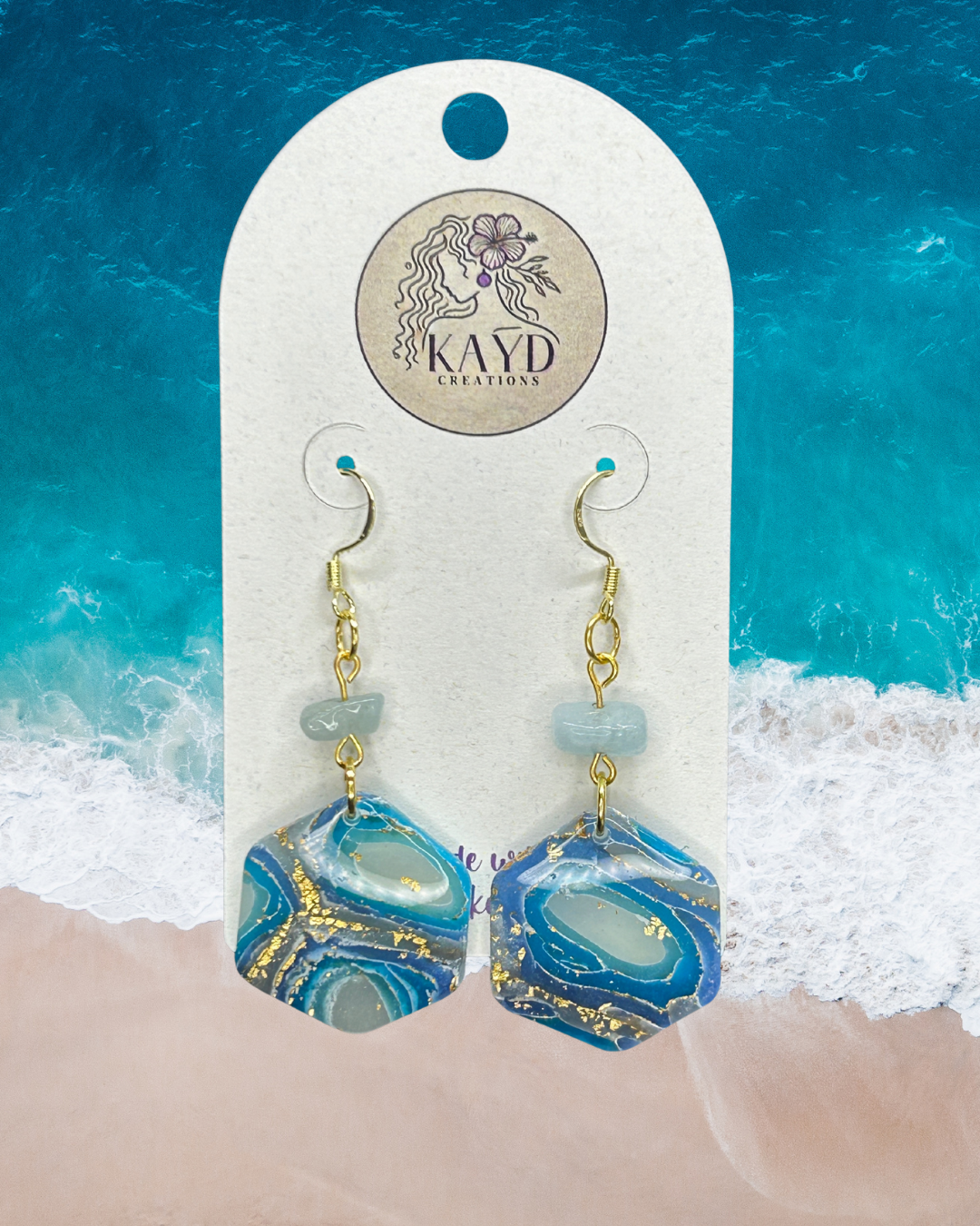 The Blue Waves Collection is inspired by the calming rhythm of the ocean and the beauty of sunlight dancing on the water. With layers of blue tones, flowing shapes, and golden accents that mimic the warmth of a coastal sunset, each piece captures the peaceful power of the sea. Lightweight and full of movement, these earrings are perfect for beach lovers, daydreamers, and anyone who carries the ocean in their heart.