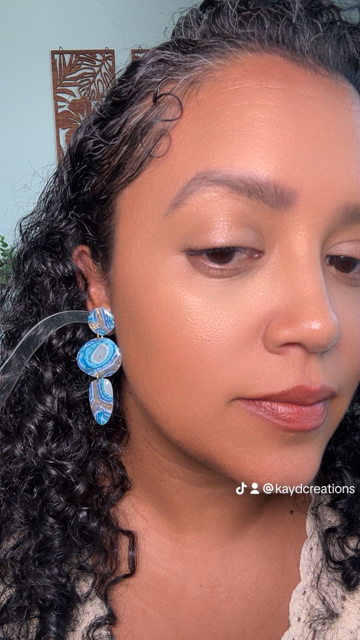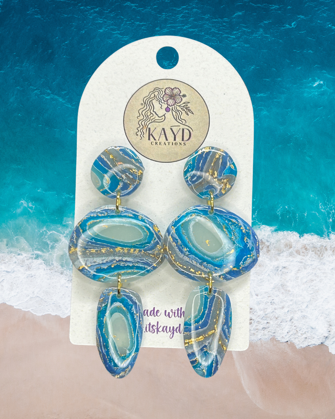 The Blue Waves Collection is inspired by the calming rhythm of the ocean and the beauty of sunlight dancing on the water. With layers of blue tones, flowing shapes, and golden accents that mimic the warmth of a coastal sunset, each piece captures the peaceful power of the sea. Lightweight and full of movement, these earrings are perfect for beach lovers, daydreamers, and anyone who carries the ocean in their heart.