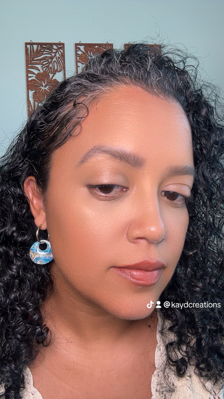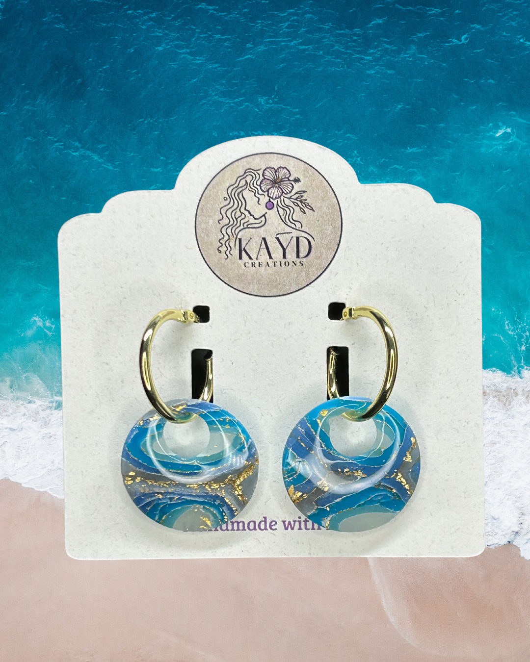 The Blue Waves Collection is inspired by the calming rhythm of the ocean and the beauty of sunlight dancing on the water. With layers of blue tones, flowing shapes, and golden accents that mimic the warmth of a coastal sunset, each piece captures the peaceful power of the sea. Lightweight and full of movement, these earrings are perfect for beach lovers, daydreamers, and anyone who carries the ocean in their heart.