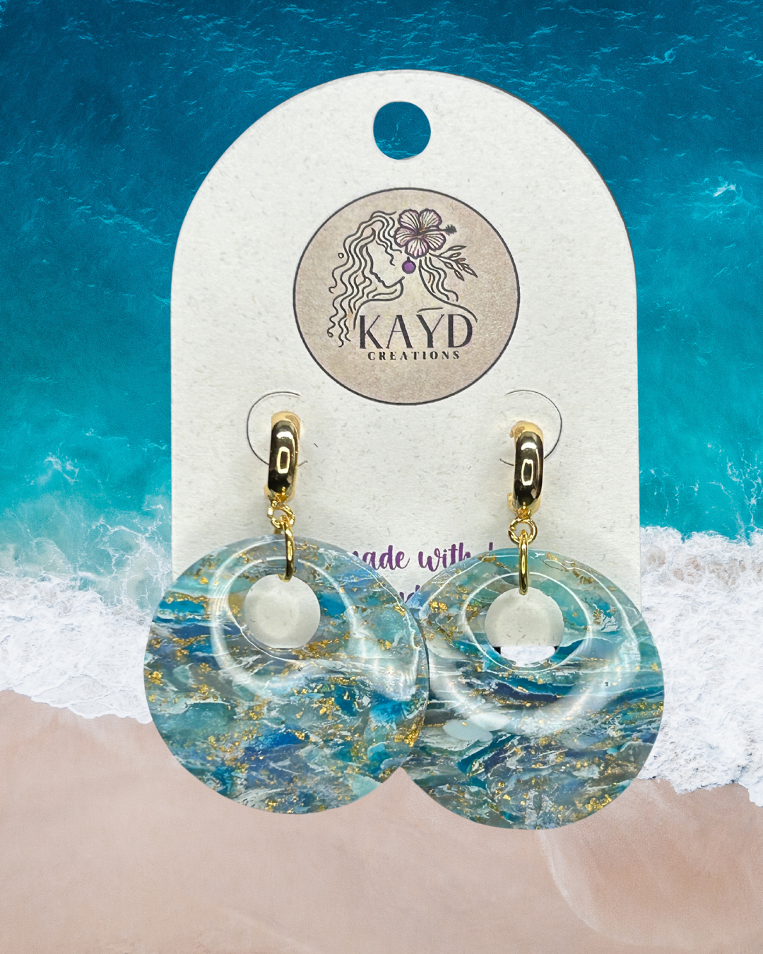The Blue Waves Collection is inspired by the calming rhythm of the ocean and the beauty of sunlight dancing on the water. With layers of blue tones, flowing shapes, and golden accents that mimic the warmth of a coastal sunset, each piece captures the peaceful power of the sea. Lightweight and full of movement, these earrings are perfect for beach lovers, daydreamers, and anyone who carries the ocean in their heart.