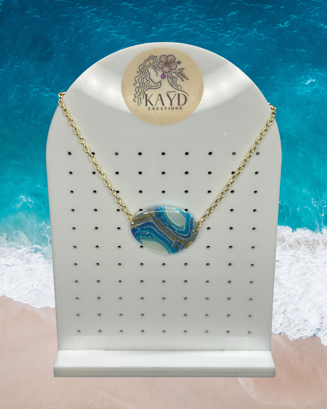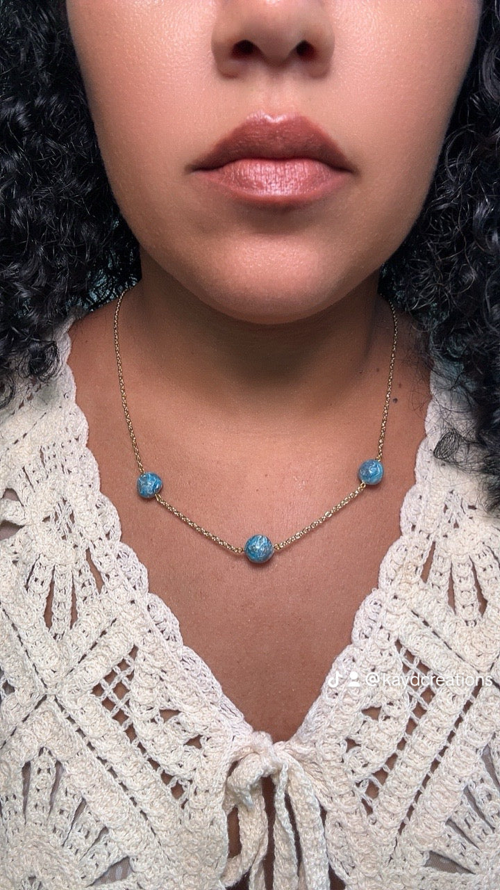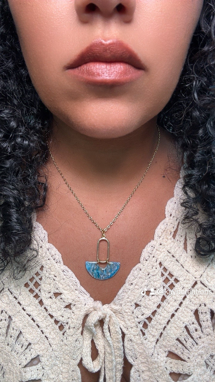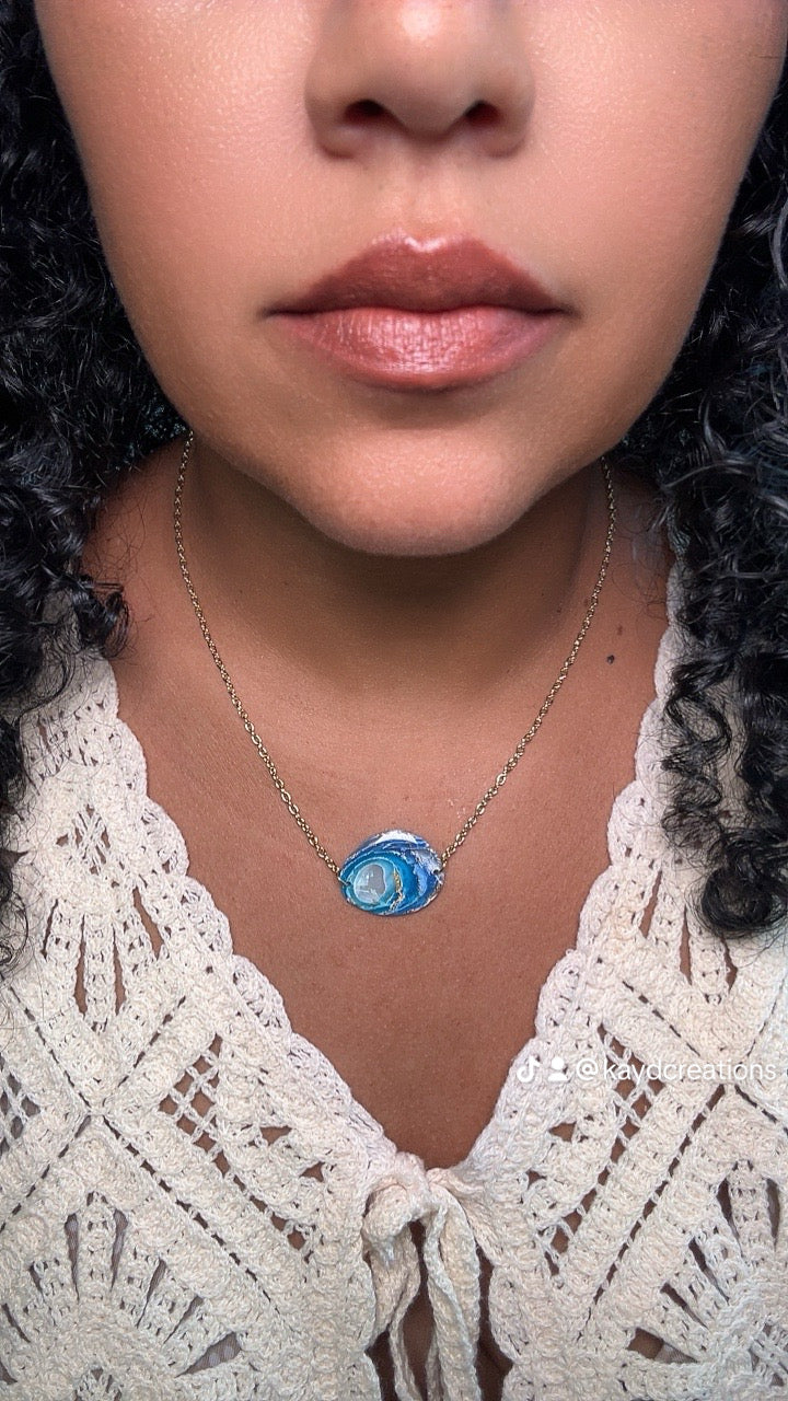 The Blue Waves Collection is inspired by the calming rhythm of the ocean and the beauty of sunlight dancing on the water. With layers of blue tones, flowing shapes, and golden accents that mimic the warmth of a coastal sunset, each piece captures the peaceful power of the sea. These necklaces are perfect for beach lovers, daydreamers, and anyone who carries the ocean in their heart.