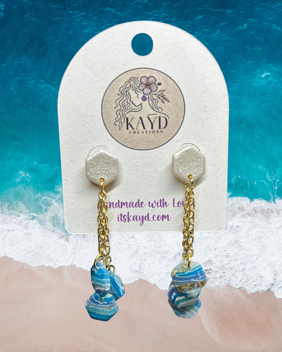 The Blue Waves Collection is inspired by the calming rhythm of the ocean and the beauty of sunlight dancing on the water. With layers of blue tones, flowing shapes, and golden accents that mimic the warmth of a coastal sunset, each piece captures the peaceful power of the sea. Lightweight and perfect for beach lovers, daydreamers, and anyone who carries the ocean in their heart.