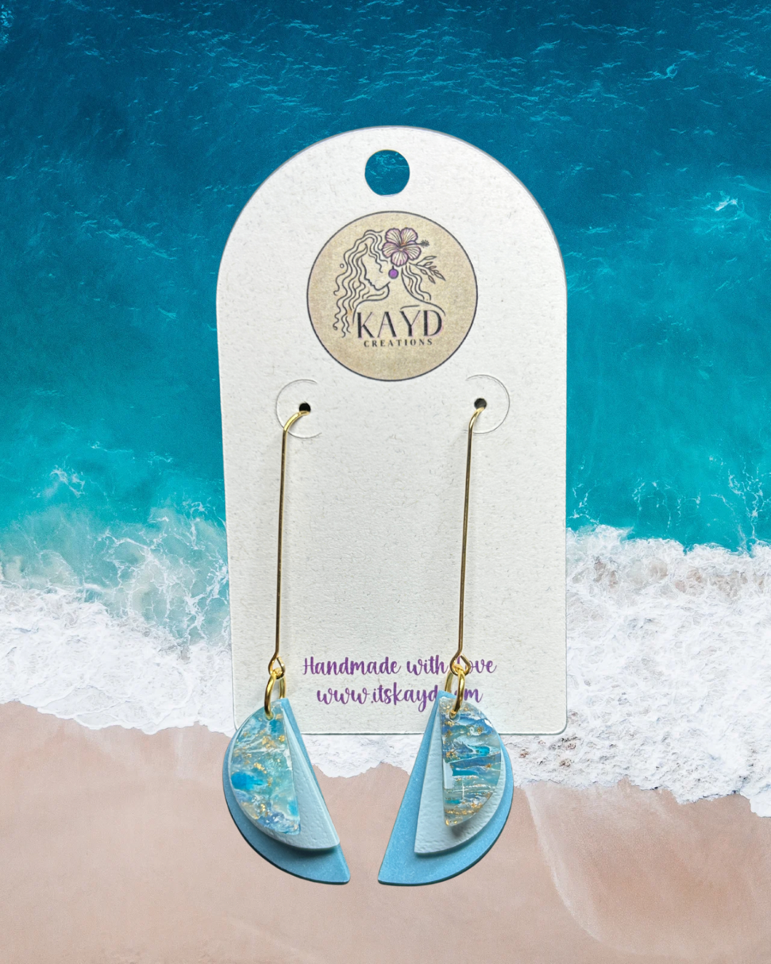 The Blue Waves Collection is inspired by the calming rhythm of the ocean and the beauty of sunlight dancing on the water. With layers of blue tones, flowing shapes, and golden accents that mimic the warmth of a coastal sunset, each piece captures the peaceful power of the sea. Lightweight and perfect for beach lovers, daydreamers, and anyone who carries the ocean in their heart.