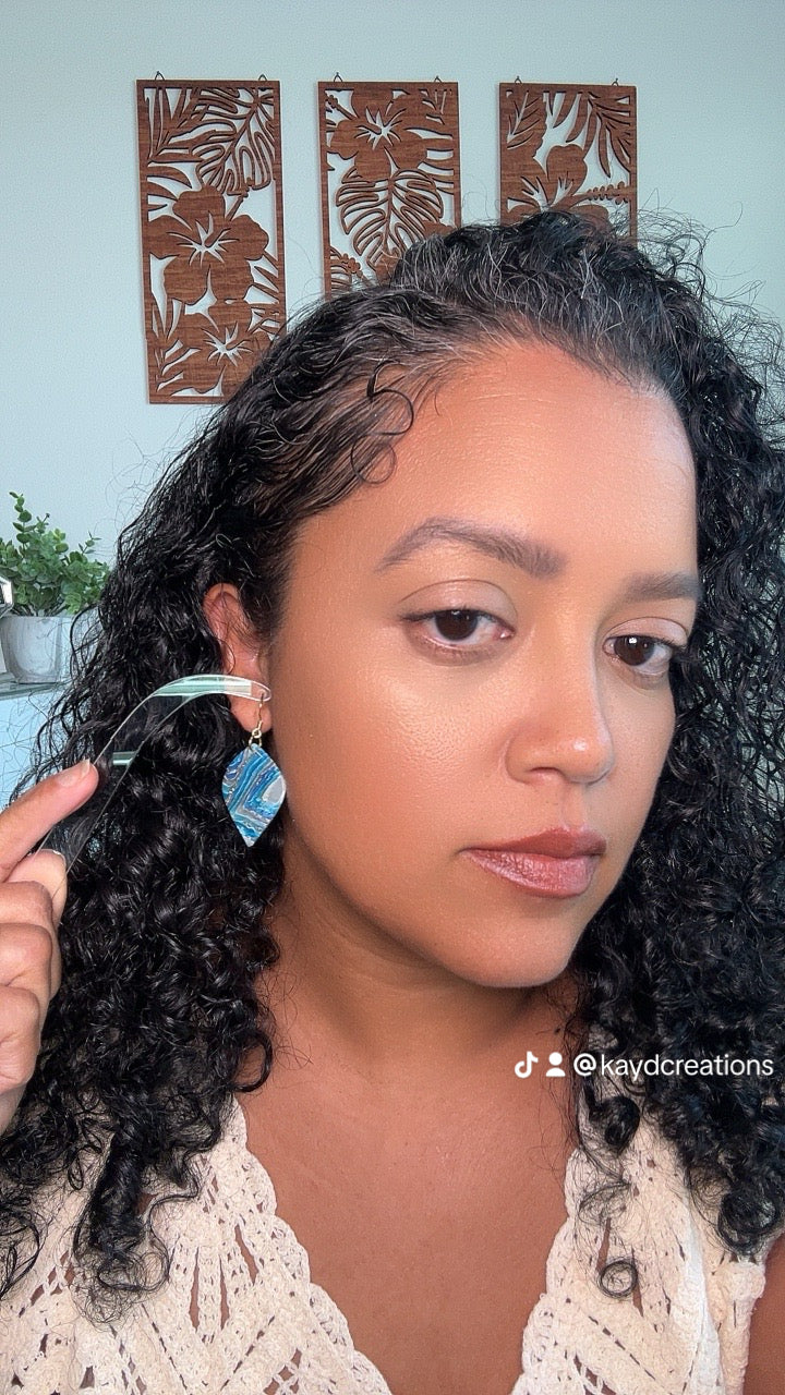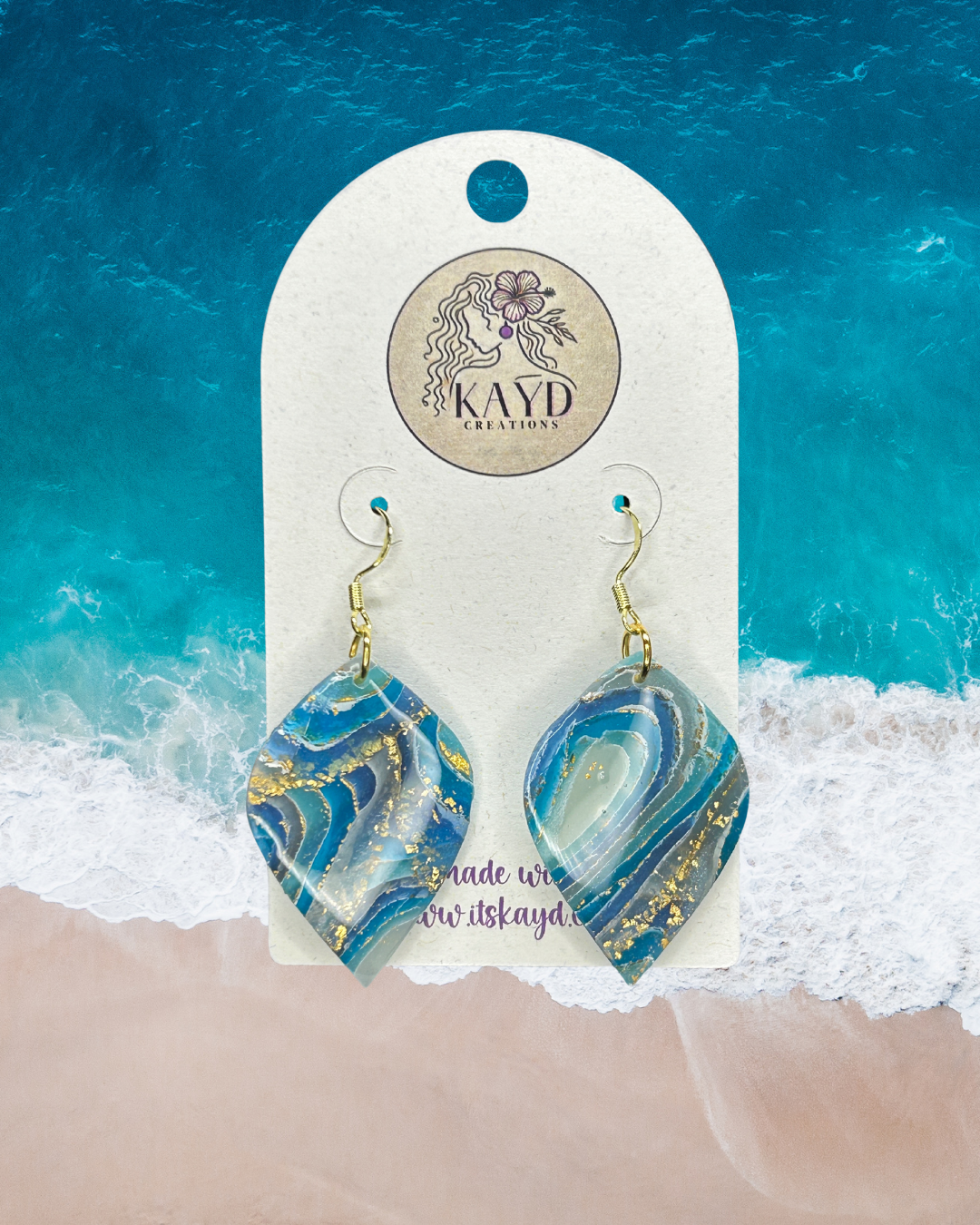 The Blue Waves Collection is inspired by the calming rhythm of the ocean and the beauty of sunlight dancing on the water. With layers of blue tones, flowing shapes, and golden accents that mimic the warmth of a coastal sunset, each piece captures the peaceful power of the sea. Lightweight and full of movement, these earrings are perfect for beach lovers, daydreamers, and anyone who carries the ocean in their heart.