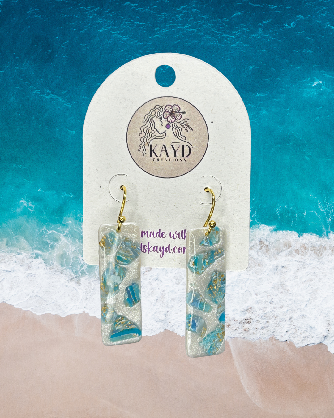 The Blue Waves Collection is inspired by the calming rhythm of the ocean and the beauty of sunlight dancing on the water. With layers of blue tones, flowing shapes, and golden accents that mimic the warmth of a coastal sunset, each piece captures the peaceful power of the sea. Lightweight and full of movement, these earrings are perfect for beach lovers, daydreamers, and anyone who carries the ocean in their heart.