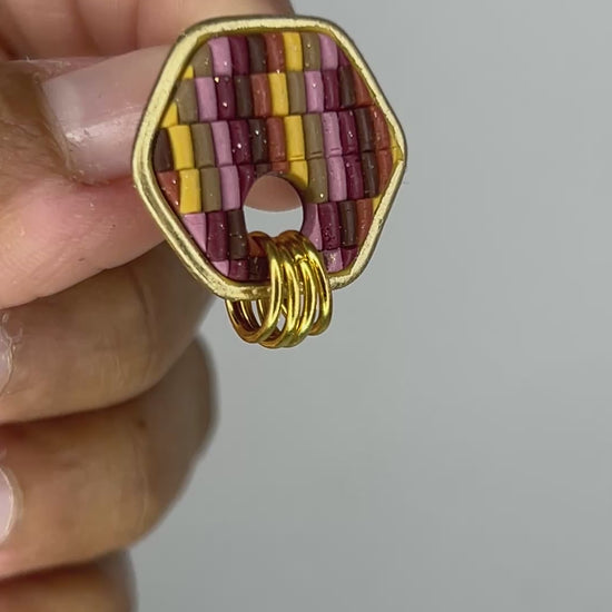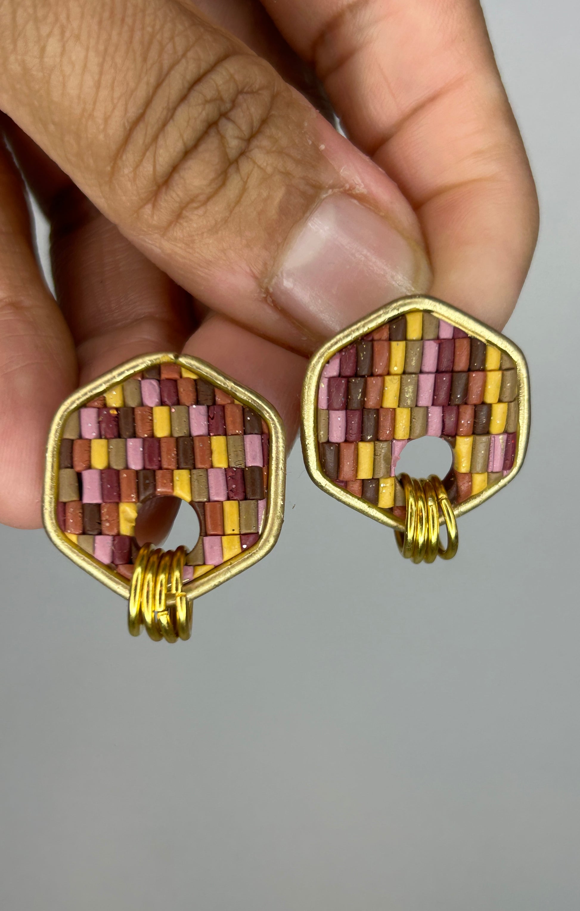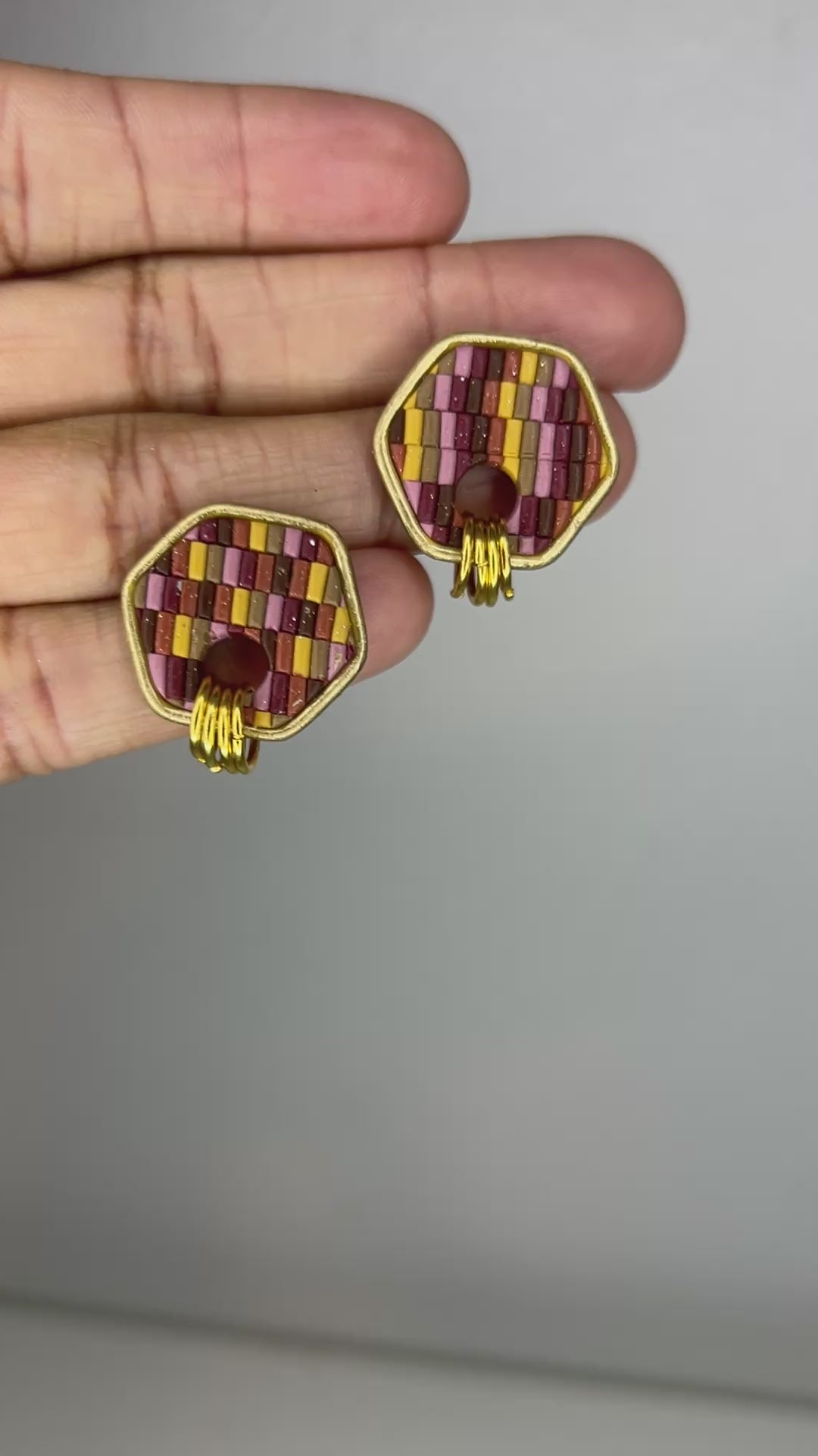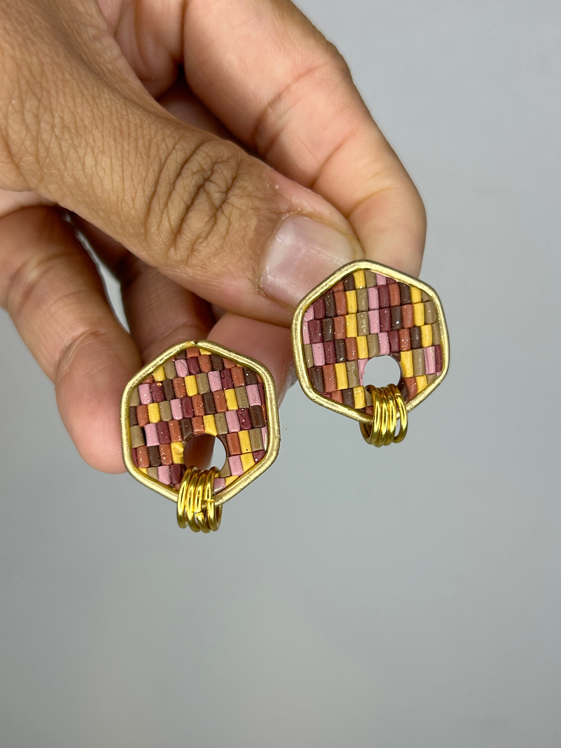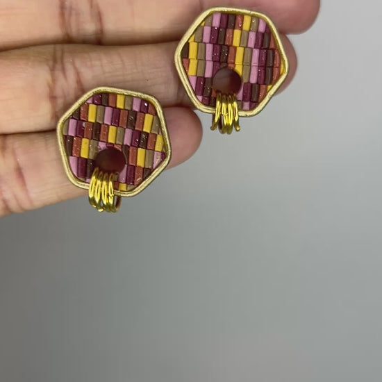 The Cozy Tones collection is all about warmth, comfort, and those soft autumn textures we love. Each pair is crafted with a beautiful sweater-knit design in rich seasonal colors—terracotta, burgundy, tan, chocolate, mustard, and mauve pink—each with a delicate shimmer that catches the light just right. Some pieces are accented with elegant gold edges or tiny gold rings for a subtle touch of charm. These small, handcrafted earrings bring the perfect cozy vibe to your everyday style, making fall feel wearable all year long