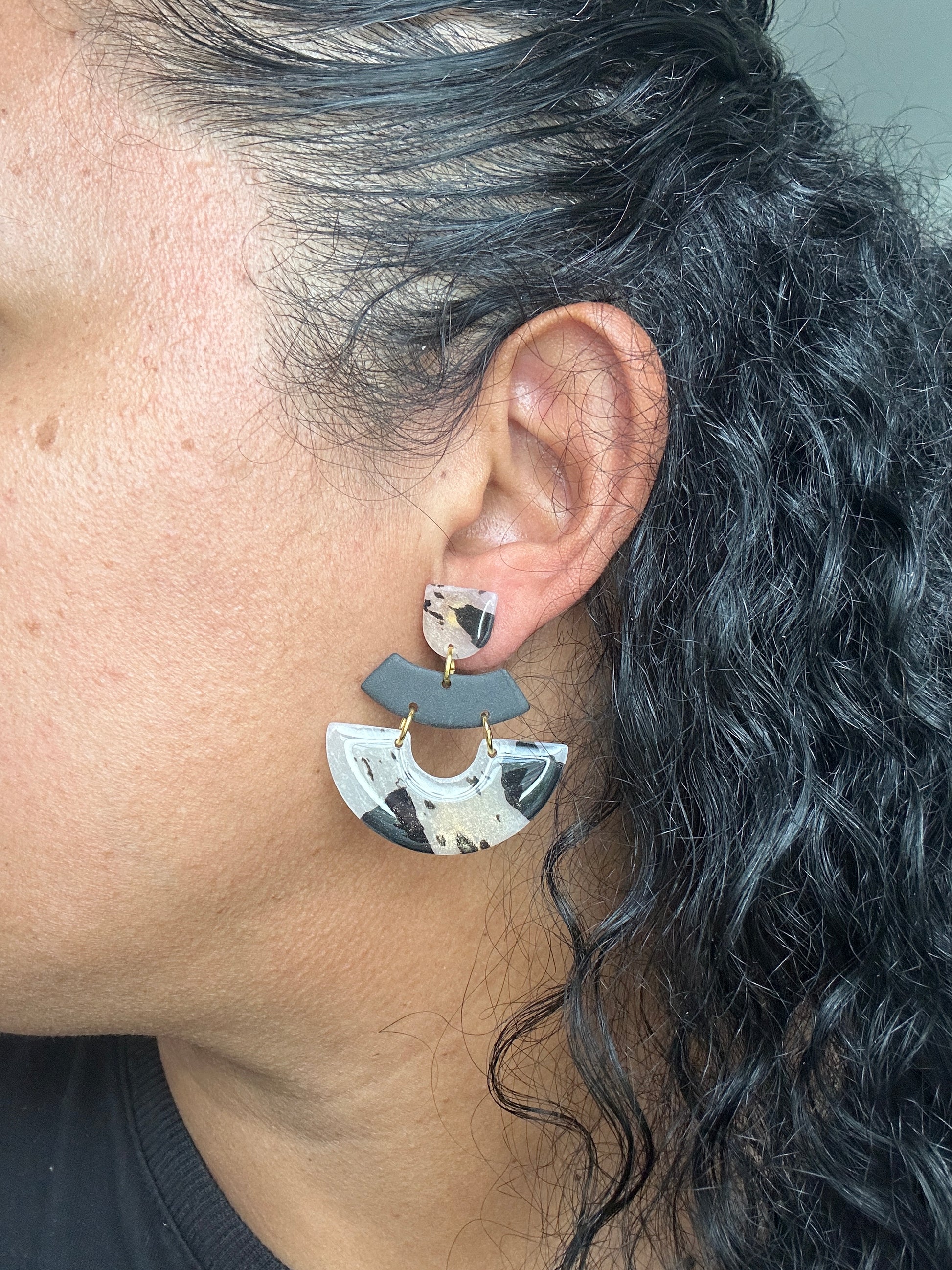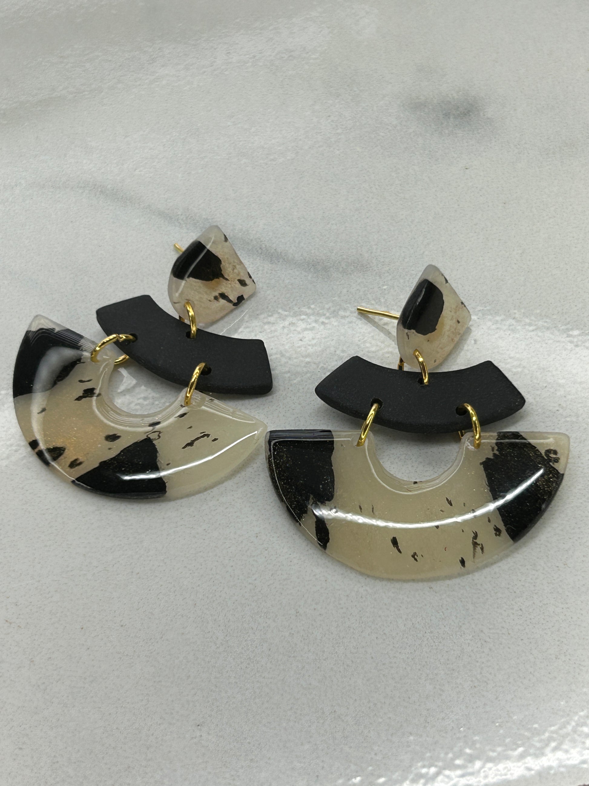 Inspired by the natural beauty of Dalmatian Jasper stone, this Collection combines earthy elegance with bold contrast. Featuring creamy tones with organic black speckles and deep black accents, each piece brings a grounding yet playful energy. These earrings are perfect for those who love neutral tones with a wild twist — effortlessly stylish and naturally unique.