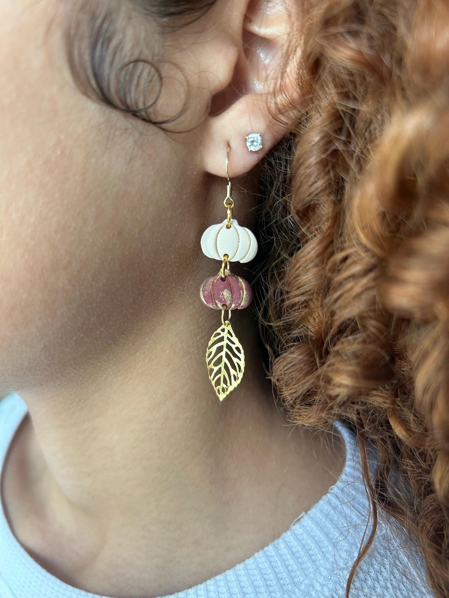 Embrace the cozy vibes of autumn with my Fall Feels Collection Featuring warm hues of mustard, burgundy, terracotta, olive green, tan, and cream, these earrings capture the essence of the season. With delicate leaf and pumpkin shapes, accented by touches of gold and silver, theyre perfect for adding a festive, earthy charm to your fall outfits. #FallVibes #AutumnElegance #HandmadeJewelry #PolymerClayEarrings