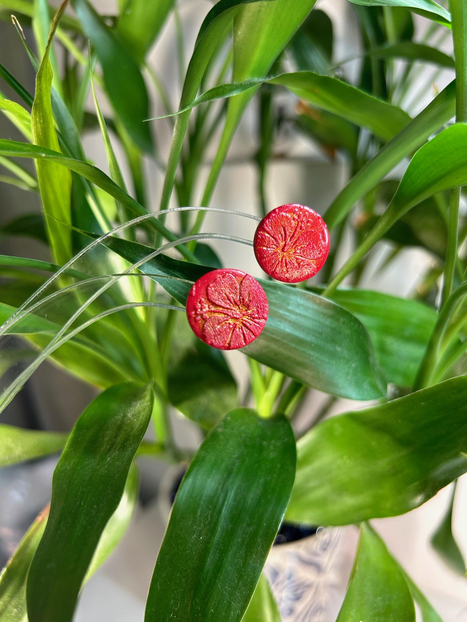 Inspired by tropical beauty, these pink, red, and gold earrings feature delicate hibiscus textures and floral designs that bring a touch of paradise to your style. Each piece is handcrafted with intricate detail, capturing the vibrant hues and elegance of blooming flowers. The blend of natural pinks, passionate reds, and a hint of gold shimmer creates a stunning, feminine accessory that’s perfect for adding a splash of color and charm. Lightweight and full of floral flair, these earrings are ideal for those who love to embrace nature’s beauty in their everyday look.