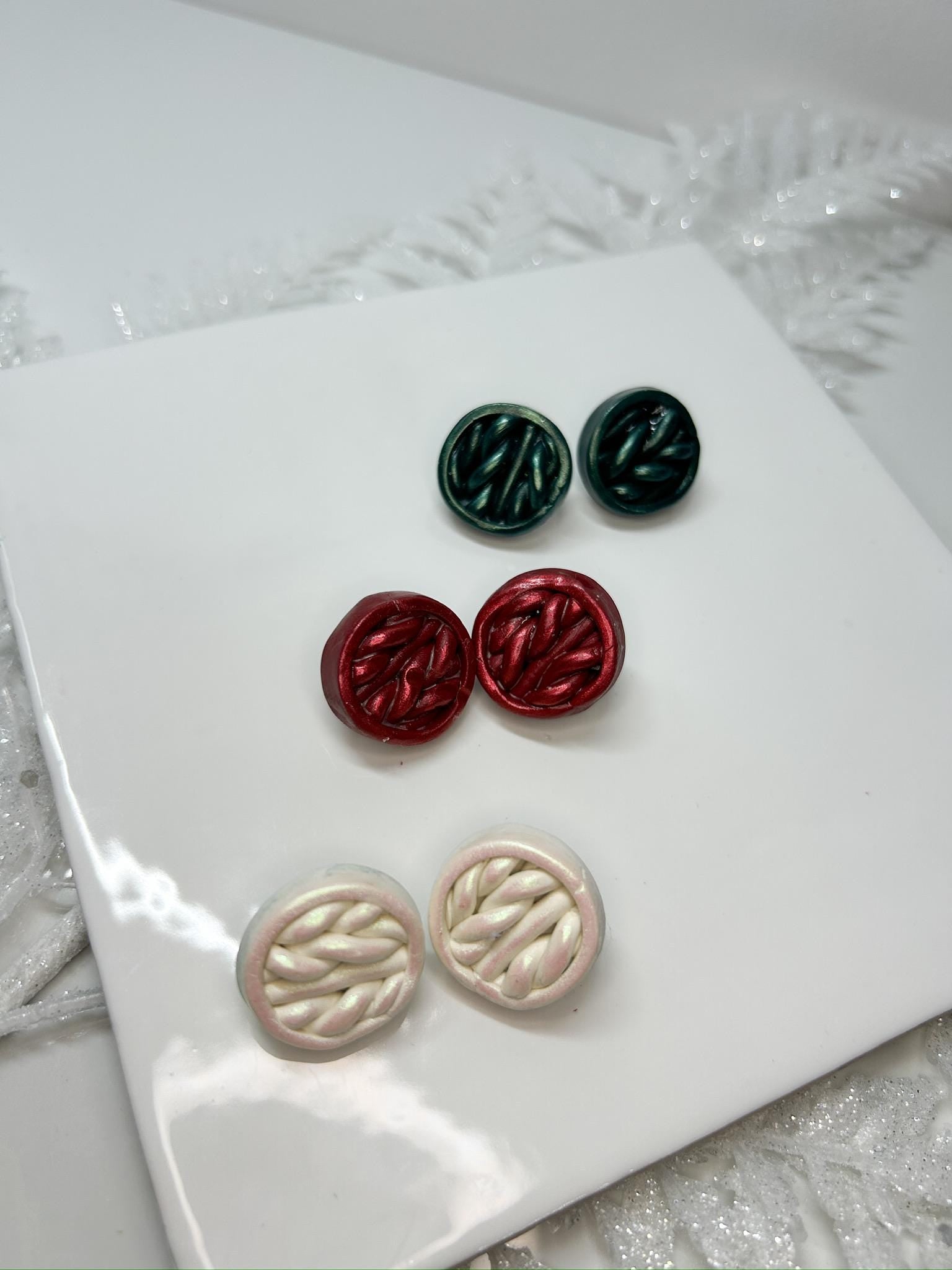 Get cozy with my Holiday Sweater-Inspired Earrings Designed in festive shades of red, green, and cream with a touch of shine, these pieces bring the warmth of the season to your style. Available in heart and round shapes, theyre perfect for adding a cheerful, nostalgic vibe to your holiday outfits. Lightweight and fun, theyre a delightful way to celebrate the season in style!
