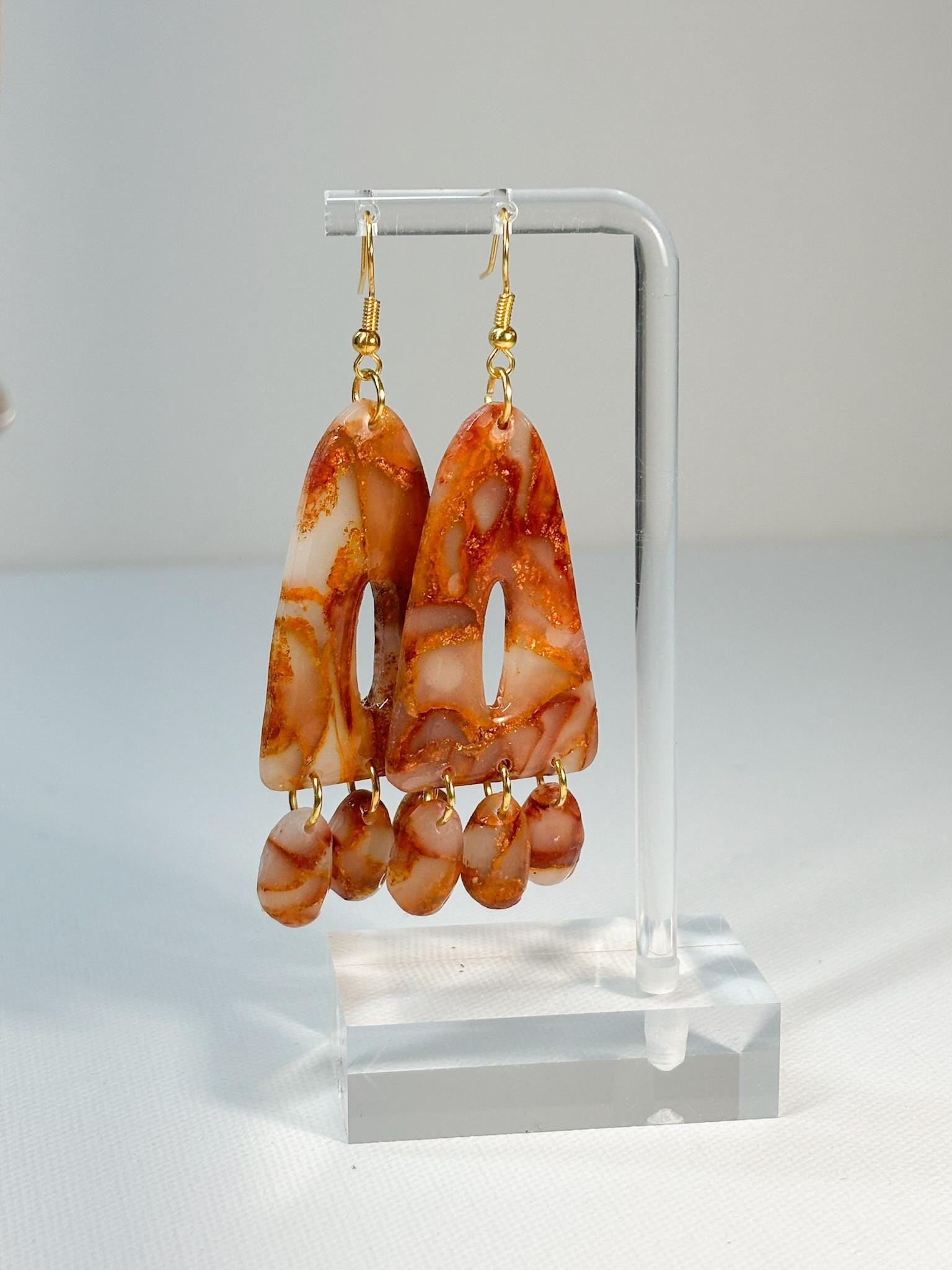 Add a burst of warmth and energy to your style with these vibrant jasper orange polymer clay earrings! Inspired by the rich tones of natural jasper, these handcrafted beauties are perfect for making a bold statement. Their earthy, sun-kissed hue brings out the perfect balance of modern flair and timeless charm. Each pair is uniquely crafted, making them a one-of-a-kind accessory thats as individual as you are!