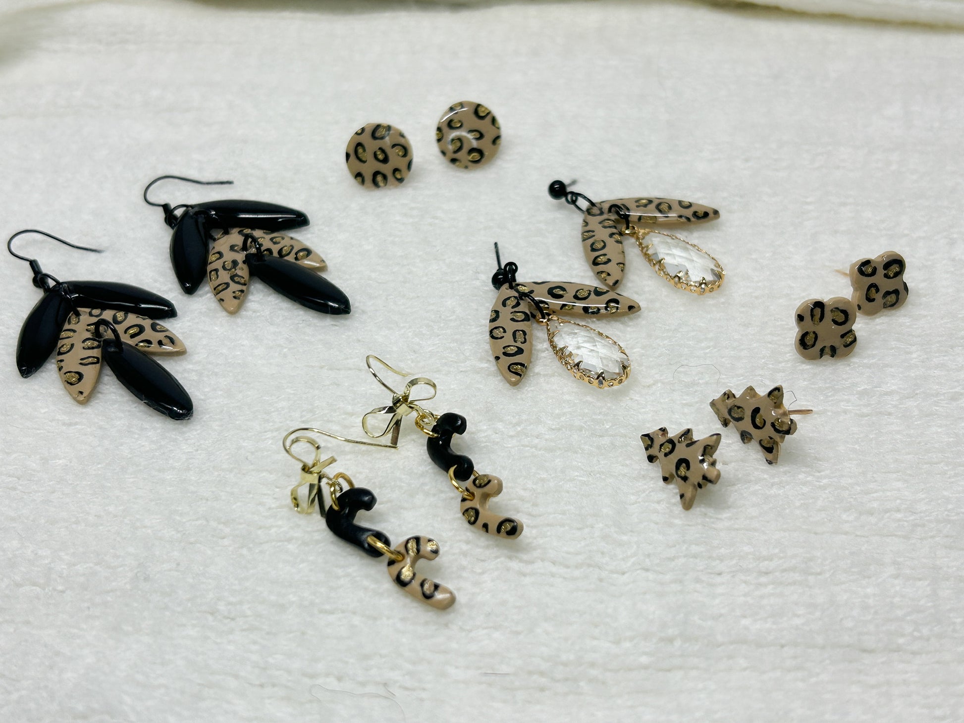 Add a wild twist to your holiday style with my Christmas Leopard Earrings. Featuring bold black, classic leopard print, and shimmering gold accents, these earrings bring festive flair with a touch of edge. Some designs are topped with gold bows or sparkling gems, making them perfect for a holiday statement. Fierce, fun, and festive—these earrings are sure to turn heads this season!