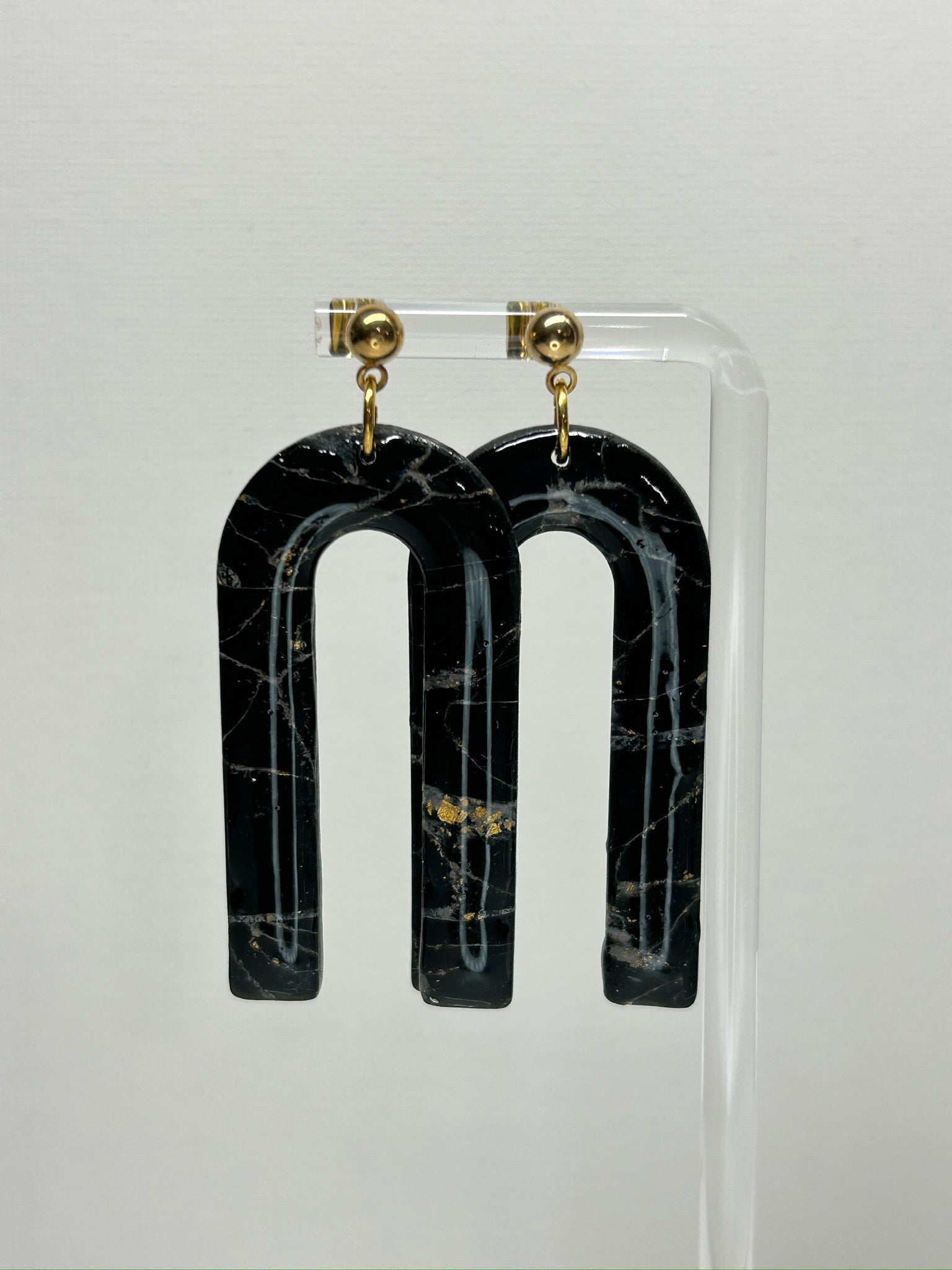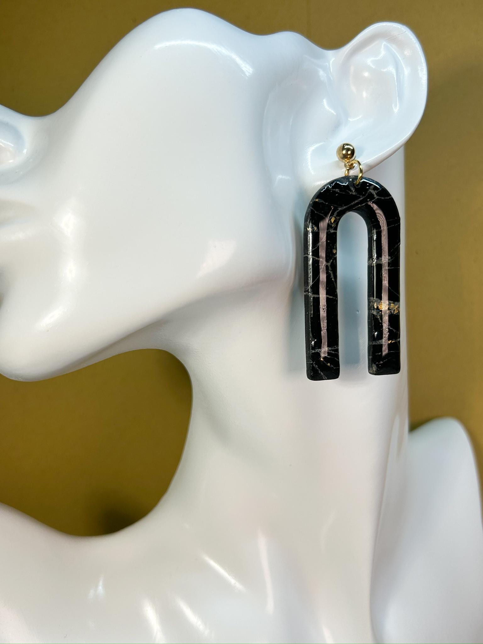Channel celestial elegance with these stunning black and gold moonstone polymer clay earrings! Featuring a luxurious blend of deep black and shimmering gold, accented with the mystical glow of moonstone, these handcrafted pieces exude both power and grace. Lightweight and sophisticated, each pair is a limited-edition accessory, perfect for adding a touch of cosmic glamour to any outfit. Let your style shine with these one-of-a-kind earrings!