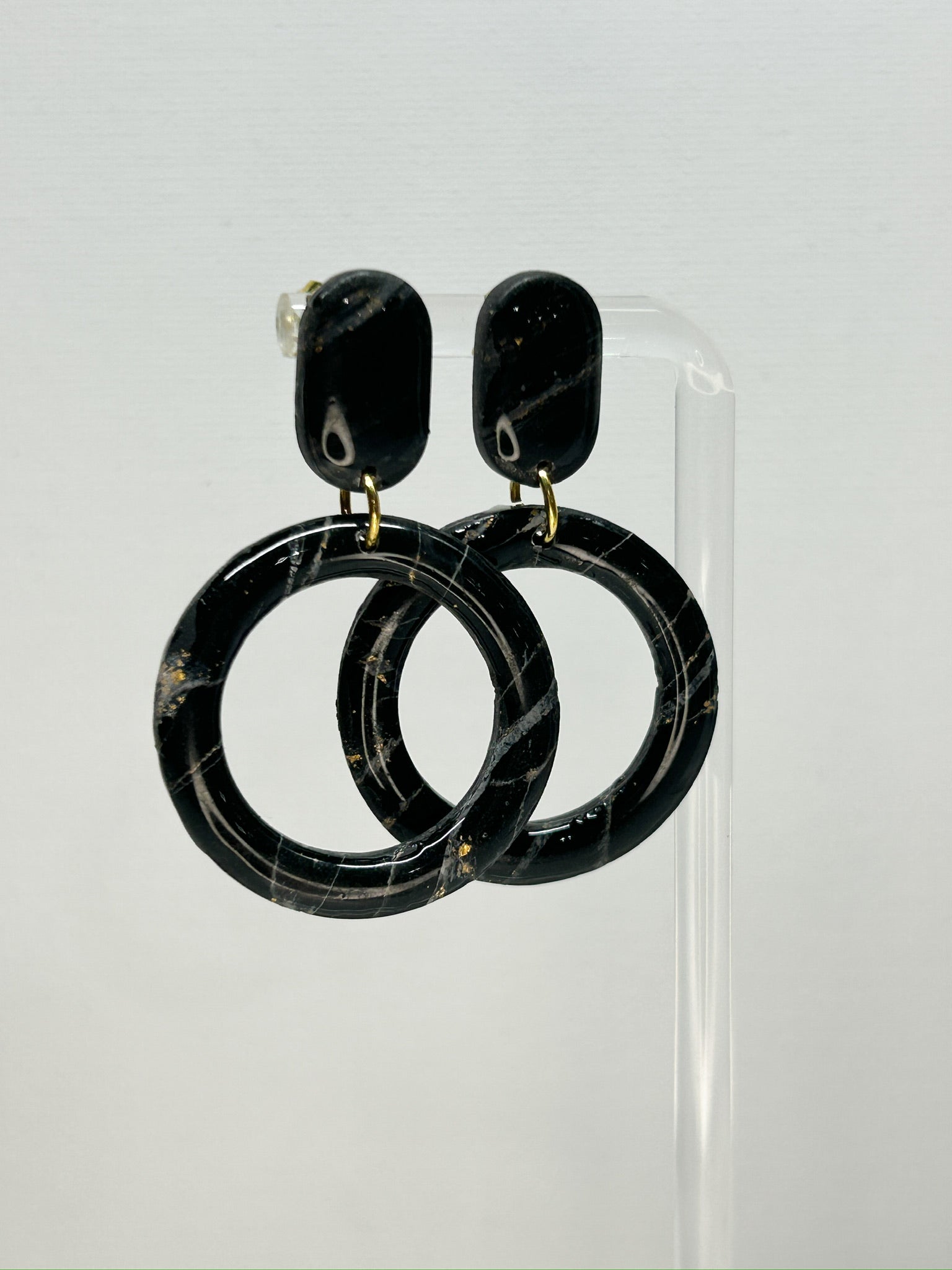 Channel celestial elegance with these stunning black and gold moonstone polymer clay earrings! Featuring a luxurious blend of deep black and shimmering gold, accented with the mystical glow of moonstone, these handcrafted pieces exude both power and grace. Lightweight and sophisticated, each pair is a limited-edition accessory, perfect for adding a touch of cosmic glamour to any outfit. Let your style shine with these one-of-a-kind earrings!