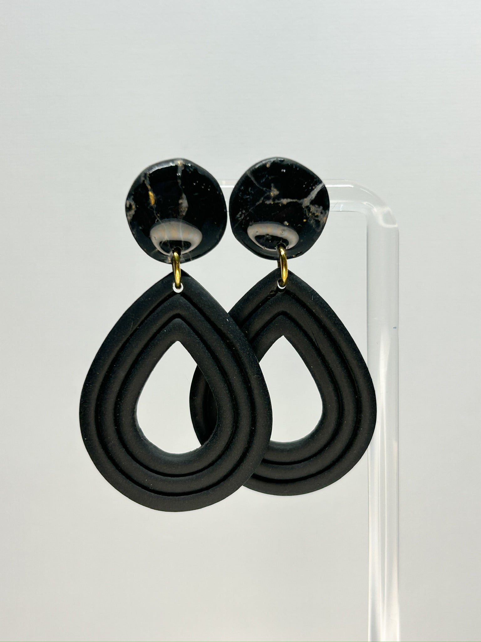 Channel celestial elegance with these stunning black and gold moonstone polymer clay earrings! Featuring a luxurious blend of deep black and shimmering gold, accented with the mystical glow of moonstone, these handcrafted pieces exude both power and grace. Lightweight and sophisticated, each pair is a limited-edition accessory, perfect for adding a touch of cosmic glamour to any outfit. Let your style shine with these one-of-a-kind earrings!