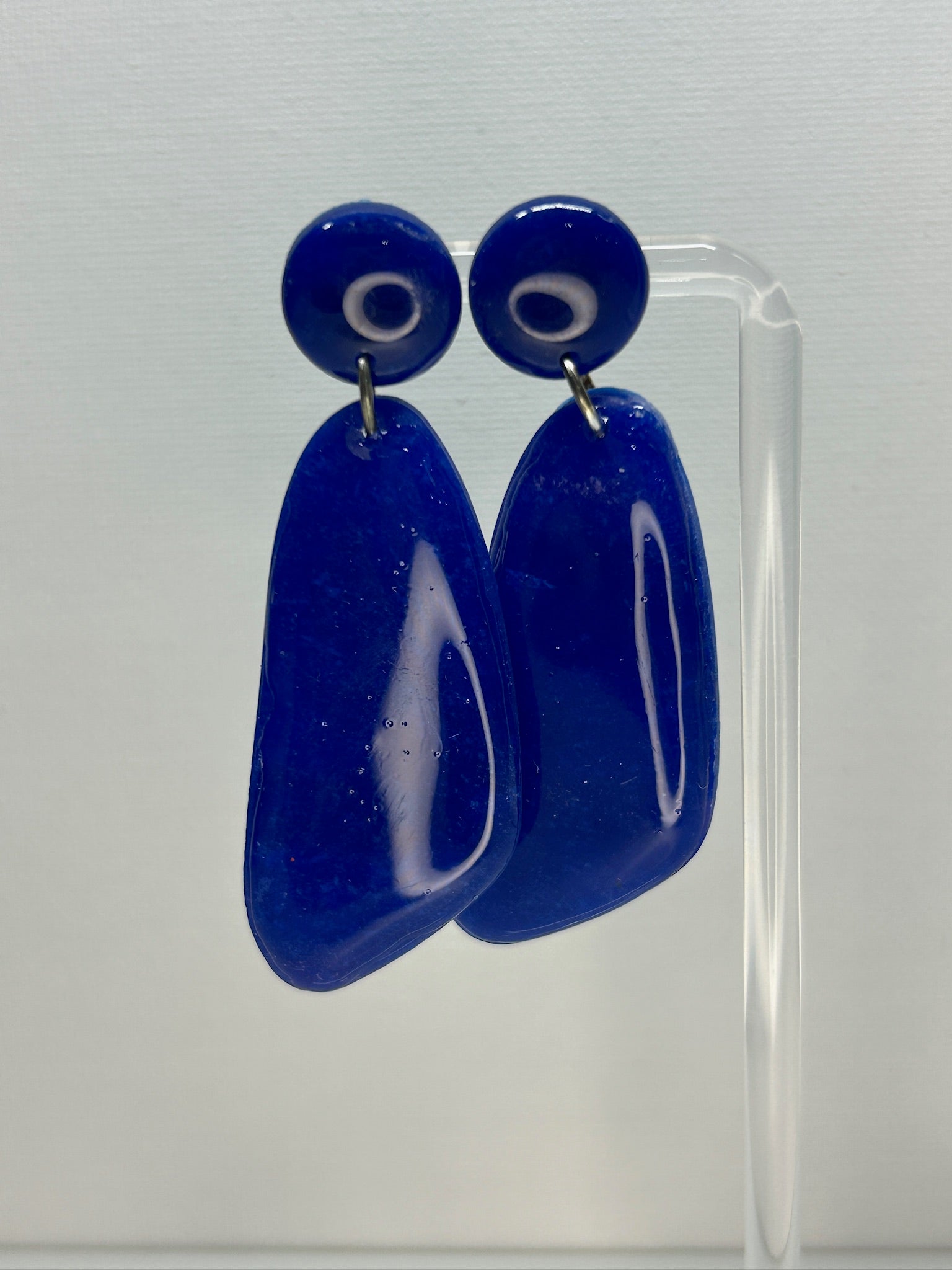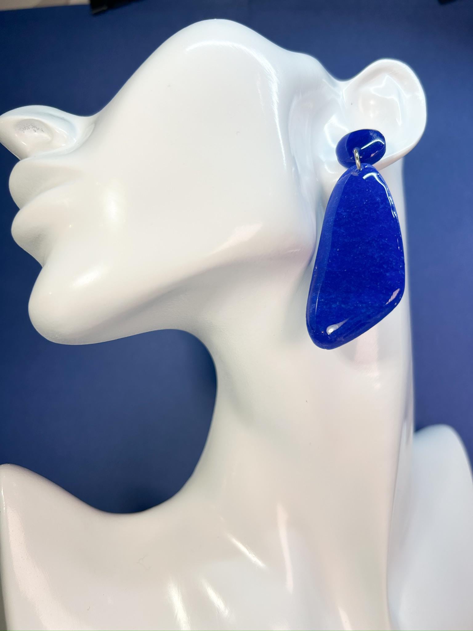 Turn heads with these mesmerizing translucent dark purple and royal blue striped polymer clay earrings! The bold fusion of colors creates an eye-catching, ethereal effect, perfect for making a statement. Handcrafted to perfection, each pair has a unique, celestial vibe that’s both modern and mystical. Lightweight and striking, these earrings are a limited-edition accessory designed to bring a touch of cosmic beauty to your look!