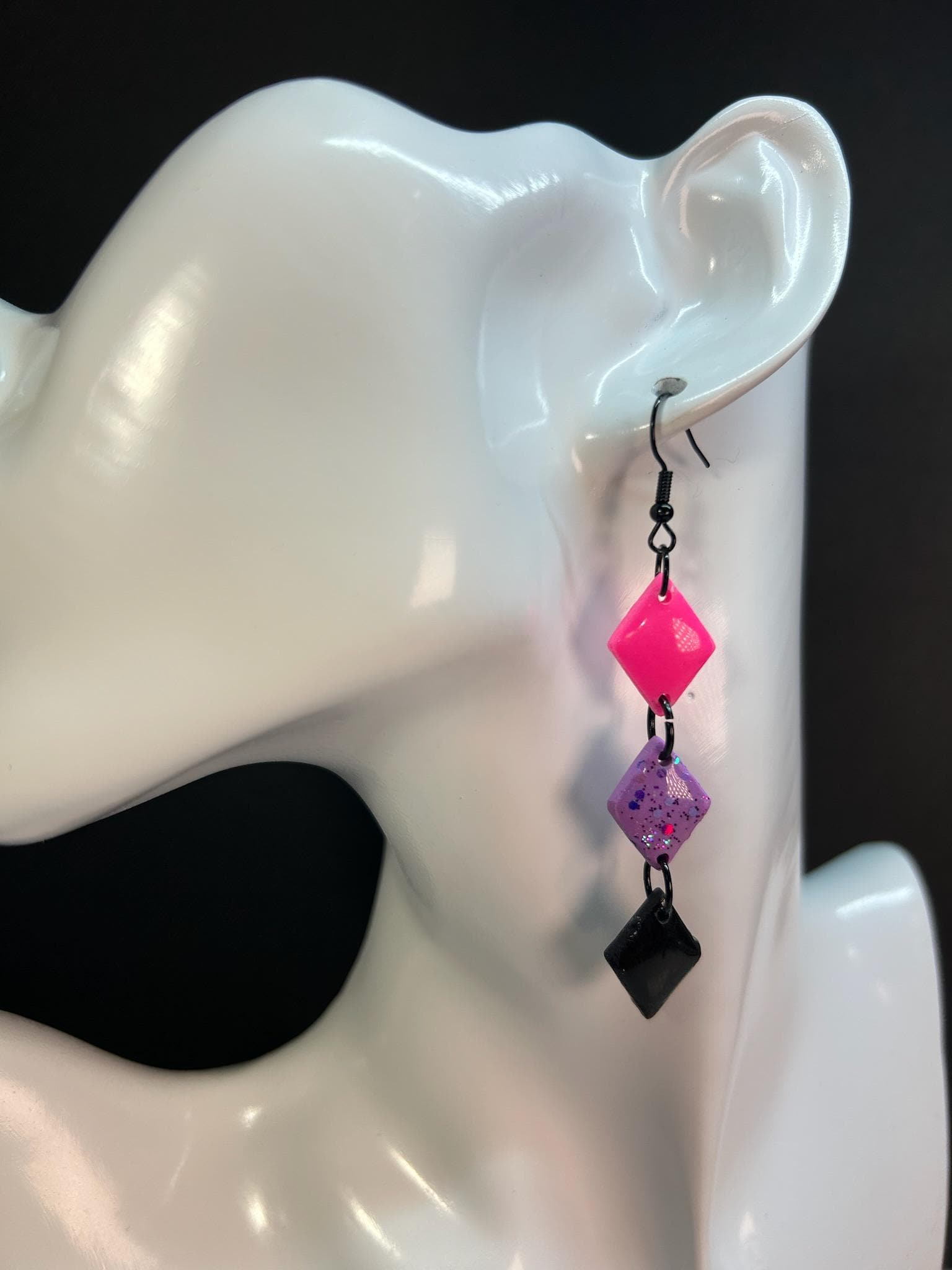 Bold and daring, these neon purple and neon pink earrings are designed for those who love to stand out. Each piece is crafted to make a statement with its vibrant colors and edgy designs, perfect for adding a touch of glam to your look. The combination of bright neon and glitter creates a striking contrast against the black, making these earrings a true conversation starter. Lightweight and unapologetically bold, they are the ultimate accessory for anyone with a fearless sense of style.