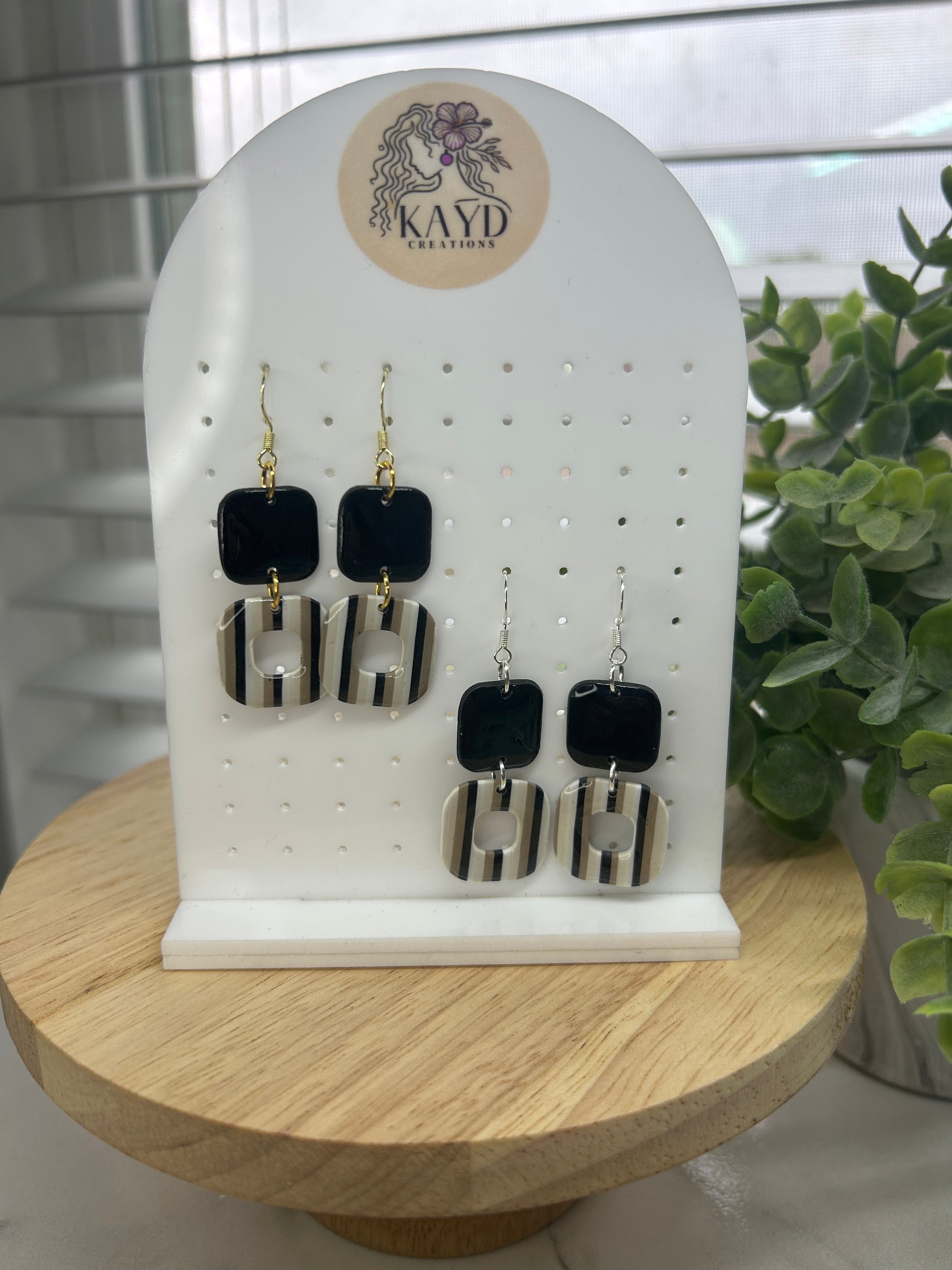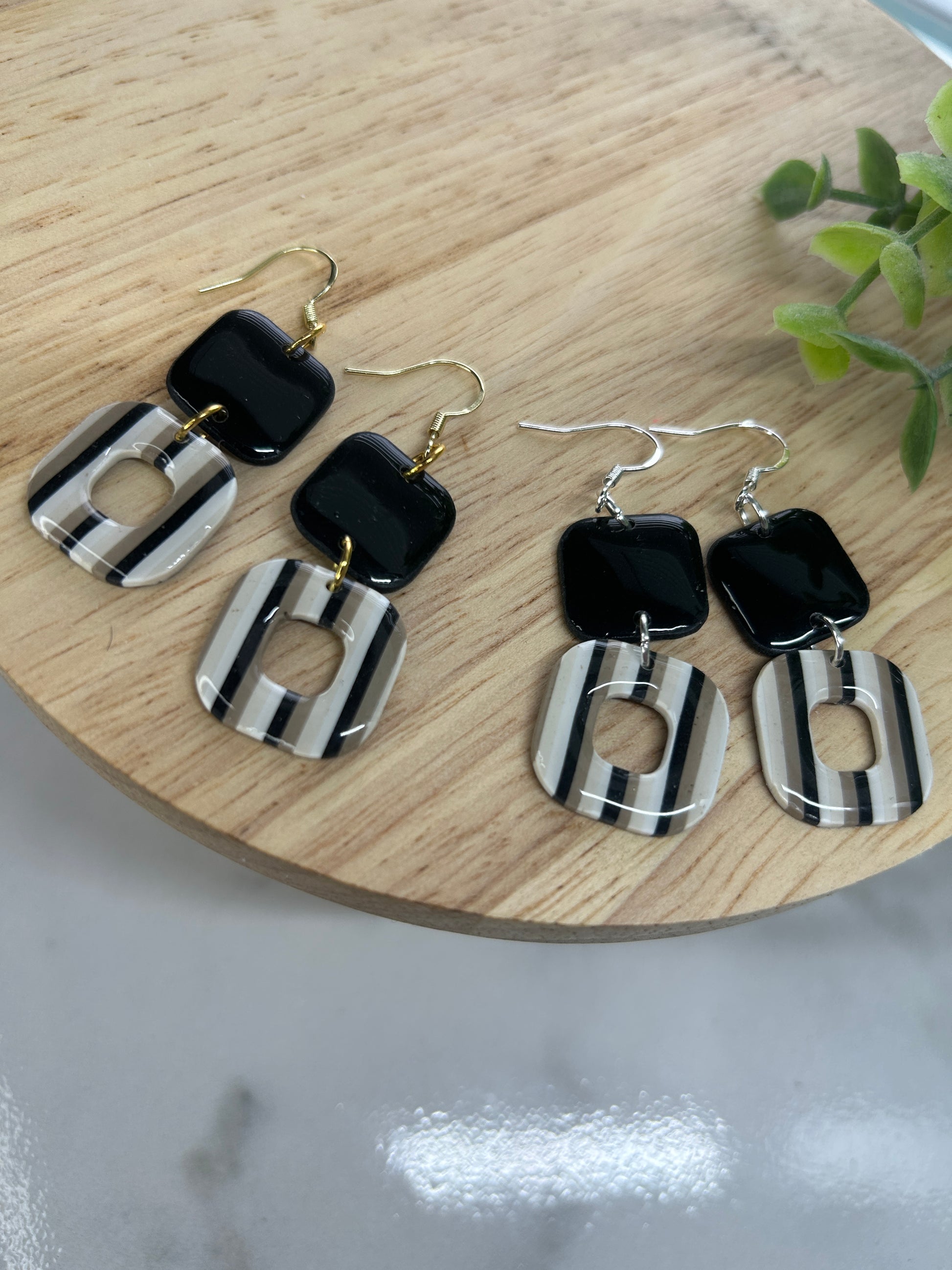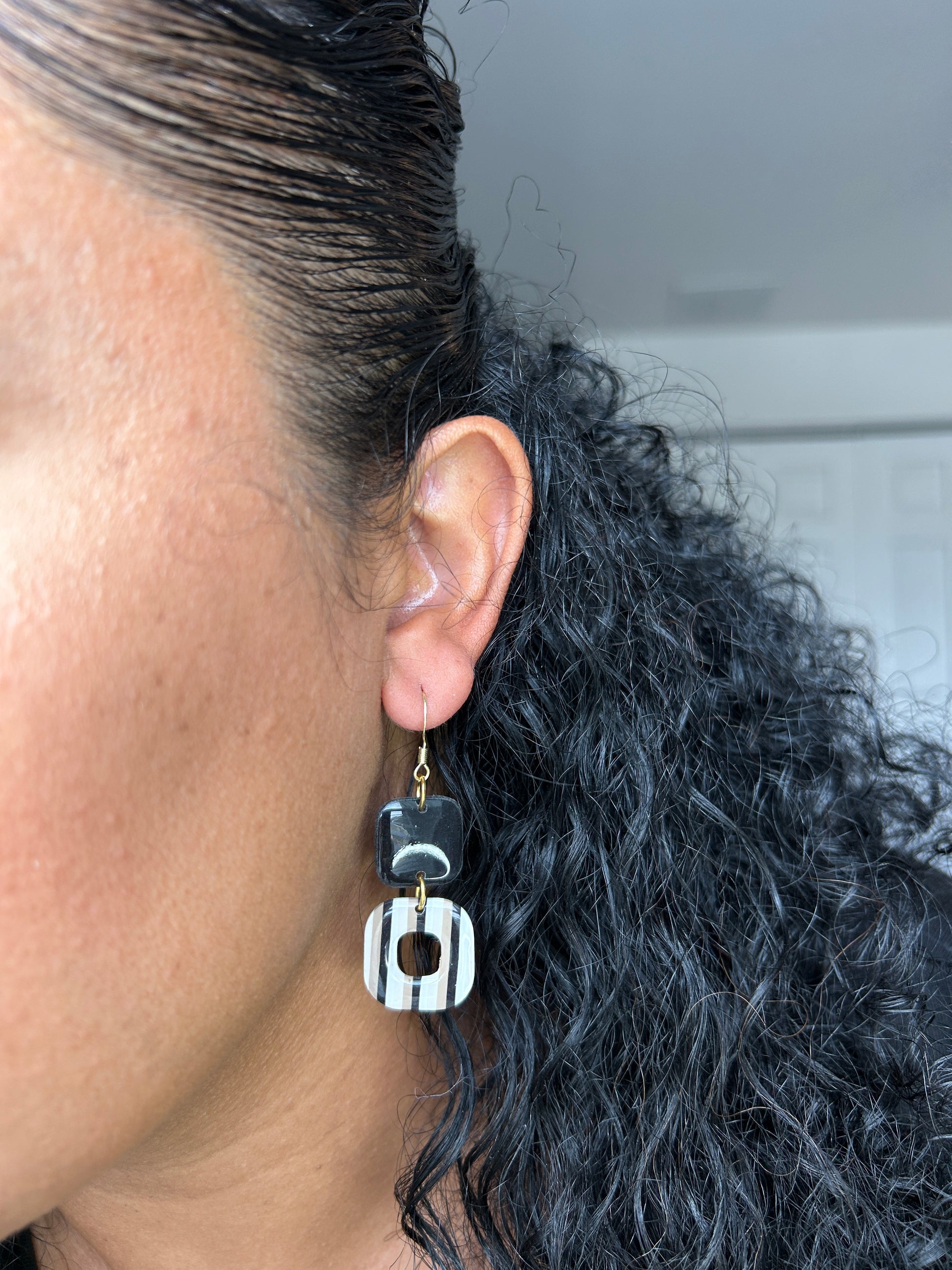 Clean, grounded, and effortlessly modern — the Neutral Lines Collection features a refined palette of black, white, tan, and nude. With a mix of organic and minimal shapes, each piece highlights bold stripes and soft curves that bring balance and simplicity to your style. These earrings are the perfect neutral statement, made to complement any look with understated elegance.