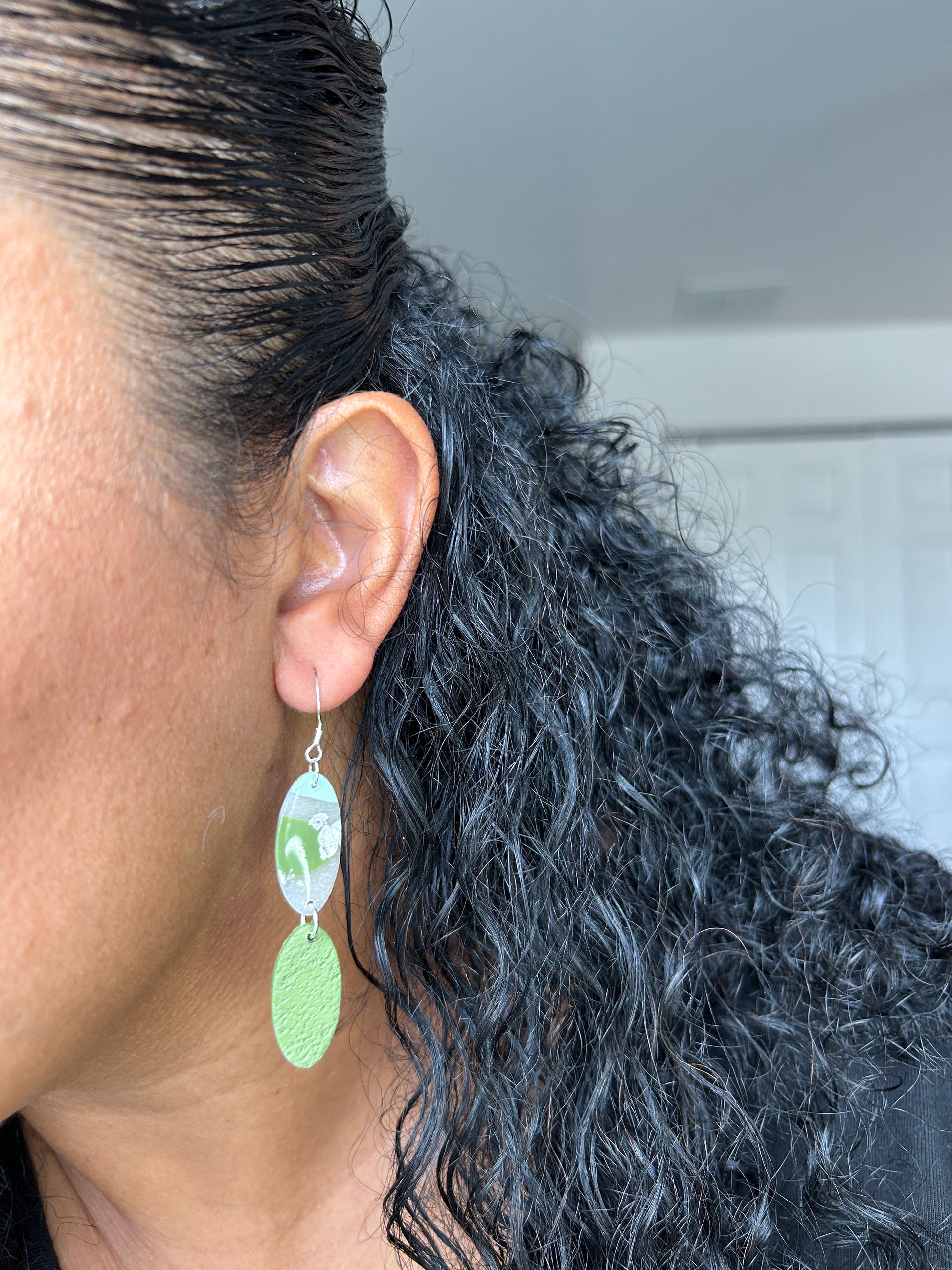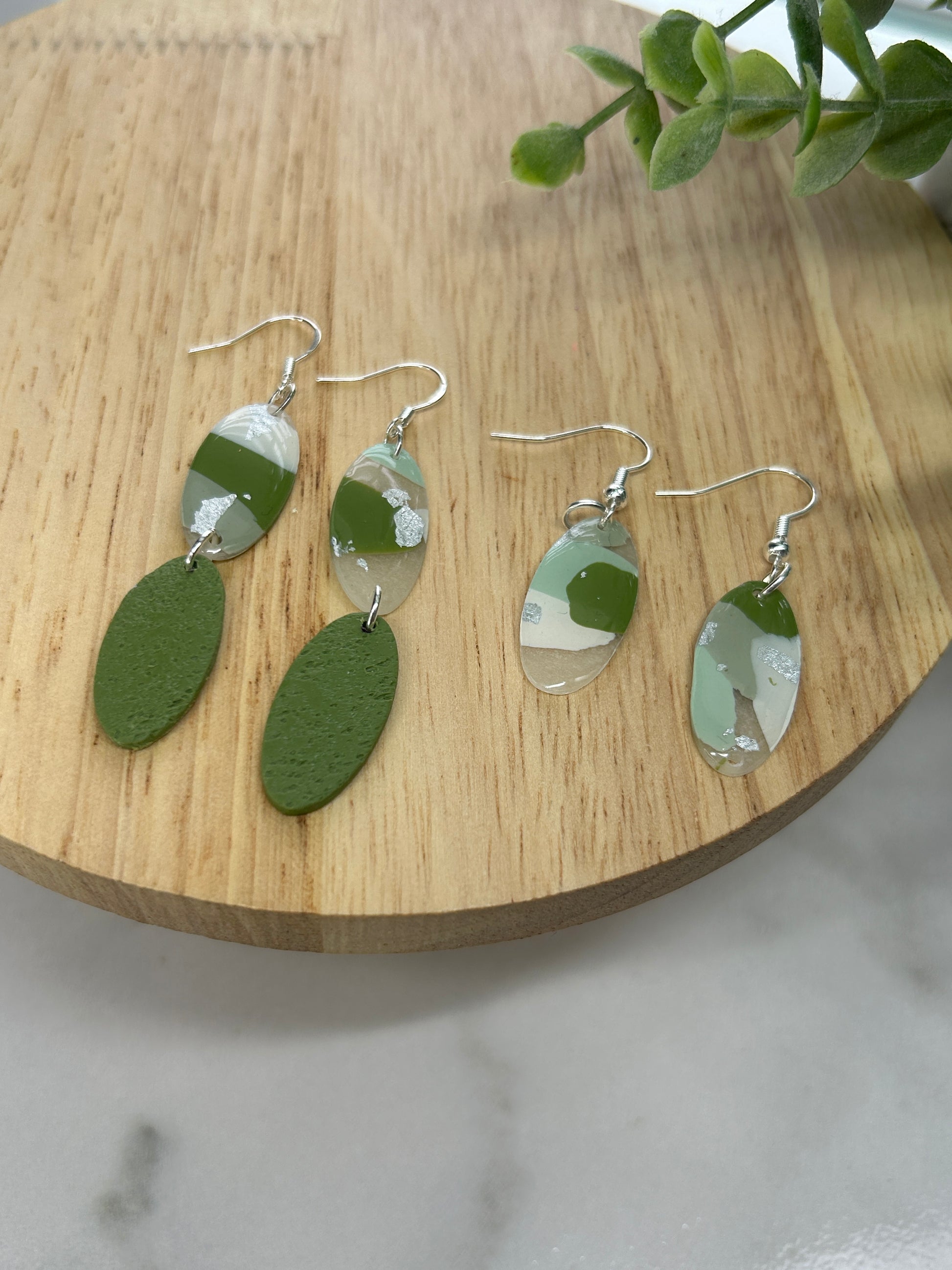 Step into the calm beauty of the Olive Breeze Collection — where soft greens like olive, sage, and teal meet the clarity of white and translucent tones. Accented with gentle splashes of gold and silver, these earrings evoke the feeling of a quiet breeze through fresh greenery. Elegant, earthy, and effortlessly wearable, they bring a peaceful glow to any look.