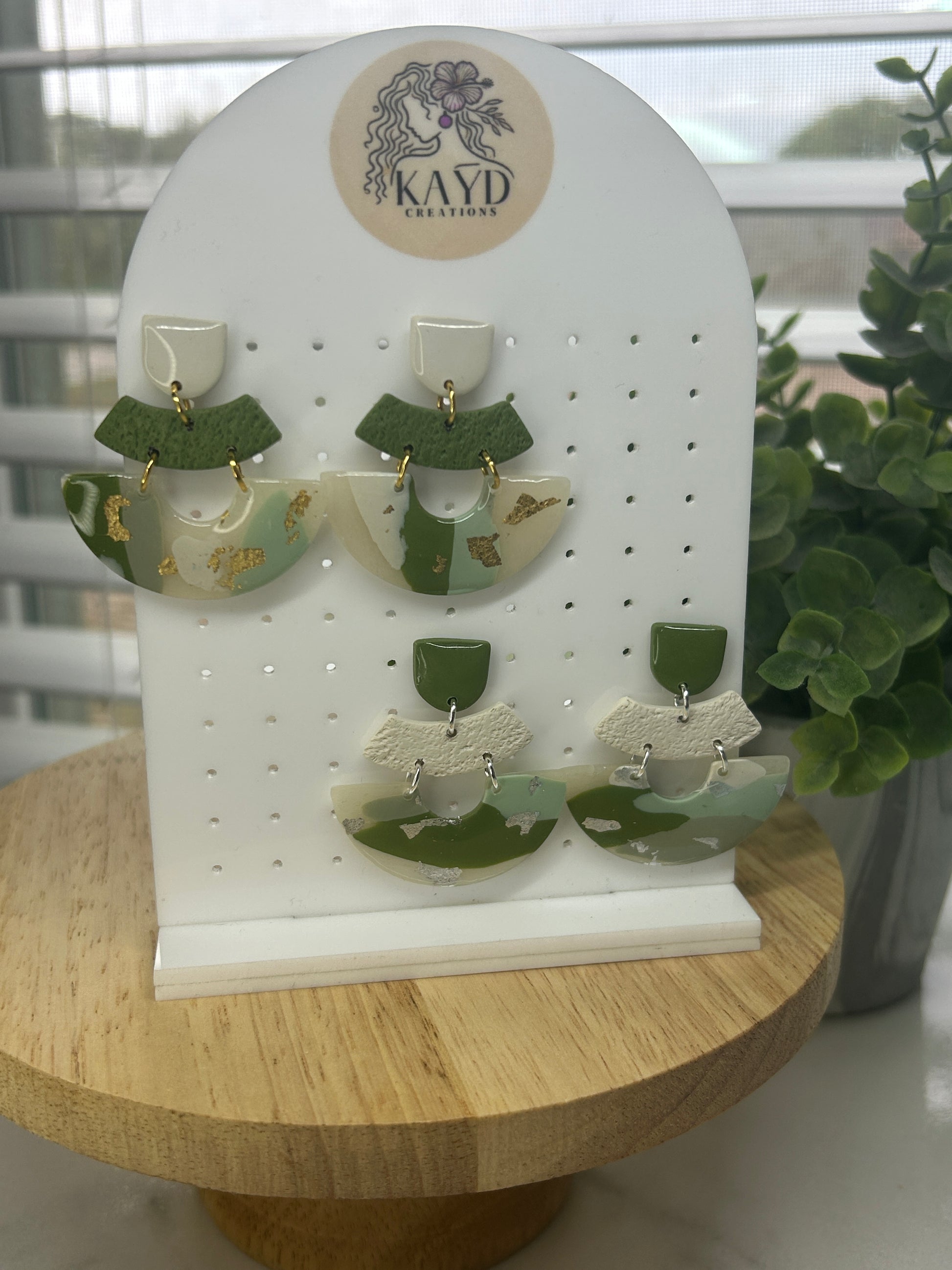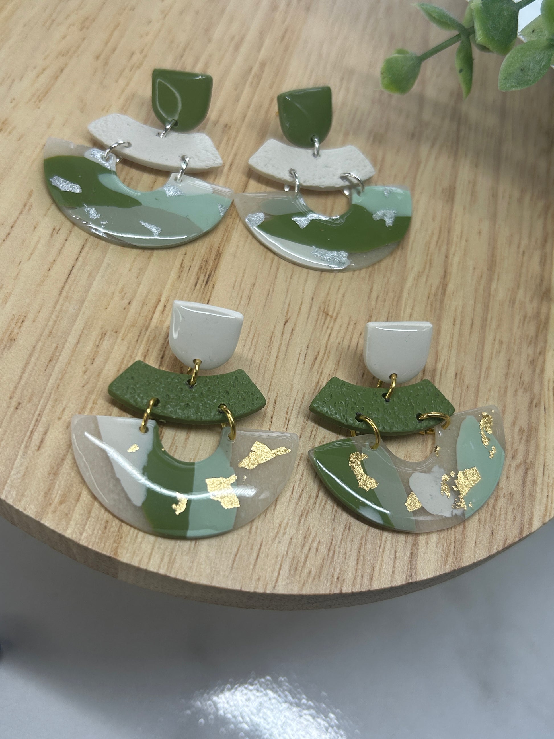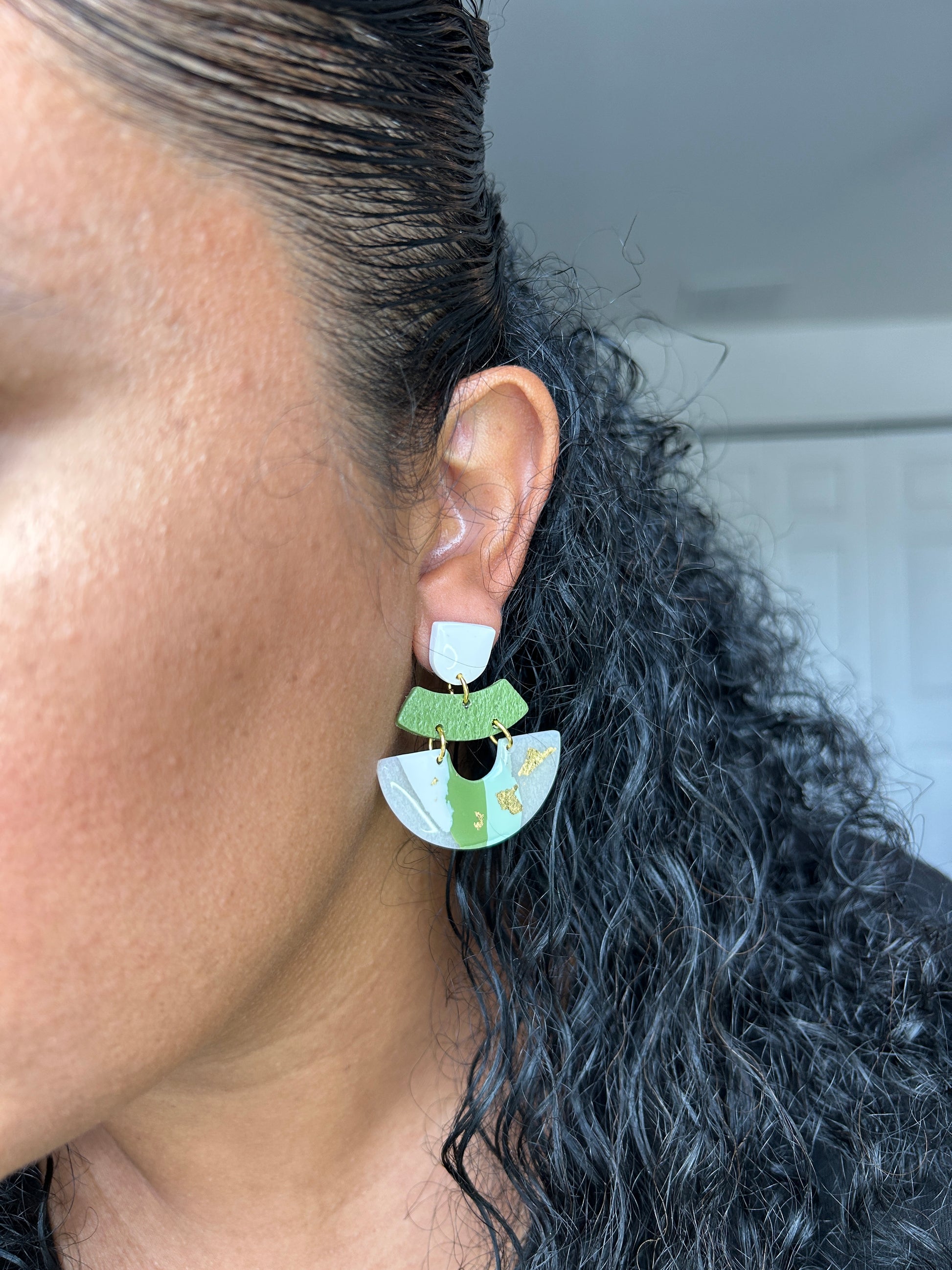 Step into the calm beauty of the Olive Breeze Collection — where soft greens like olive, sage, and teal meet the clarity of white and translucent tones. Accented with gentle splashes of gold and silver, these earrings evoke the feeling of a quiet breeze through fresh greenery. Elegant, earthy, and effortlessly wearable, they bring a peaceful glow to any look.