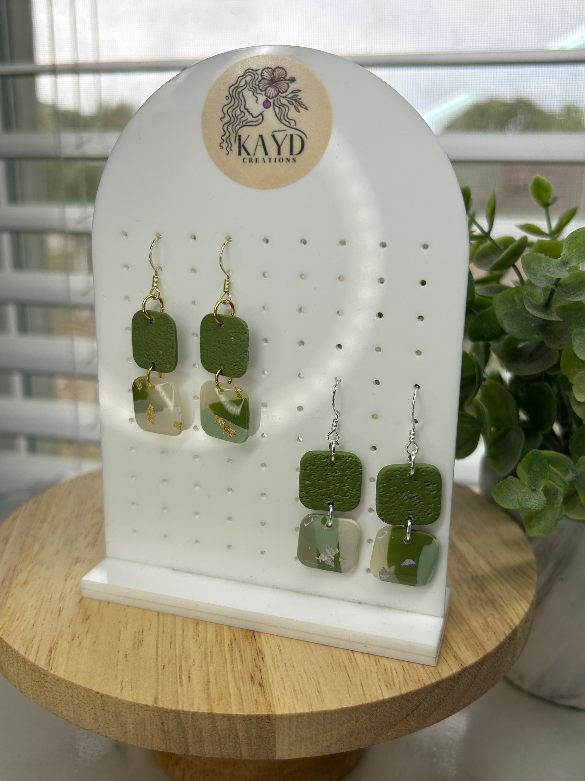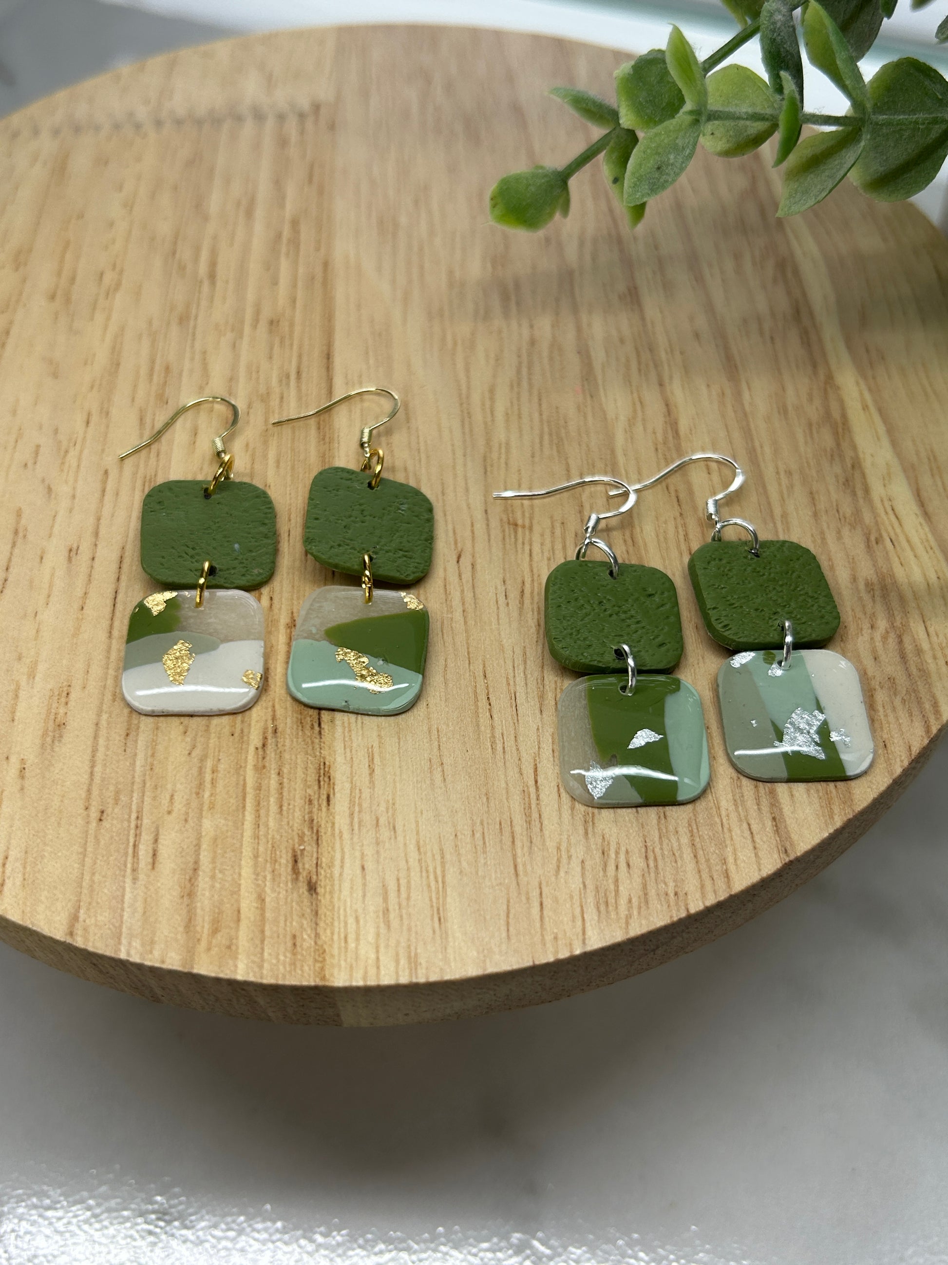 Step into the calm beauty of the Olive Breeze Collection — where soft greens like olive, sage, and teal meet the clarity of white and translucent tones. Accented with gentle splashes of gold and silver, these earrings evoke the feeling of a quiet breeze through fresh greenery. Elegant, earthy, and effortlessly wearable, they bring a peaceful glow to any look.