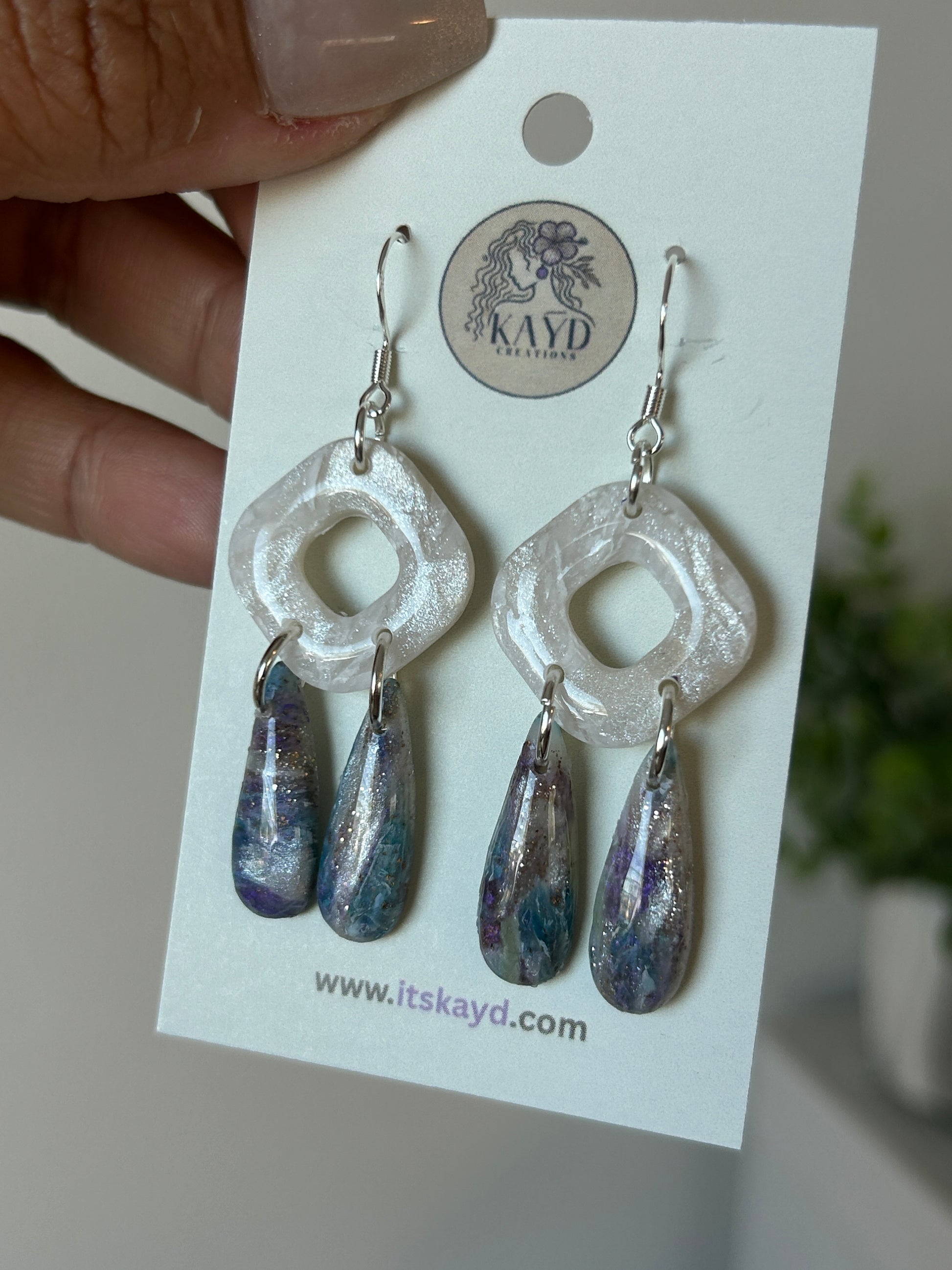 The Painted Skies Collection is a tiny, limited release inspired by dreamy sunsets and soft twilight hues. Blending shades of periwinkle, lavender, sky blue, and pearlescent white, soft green each piece is hand-marbled to reflect the beauty of a sky brushed with color. Finished with silver accents and subtle shimmer, these earrings feel airy, artistic, and effortlessly elegant. With only a small number available, this collection is as rare and special as a perfect painted sky.