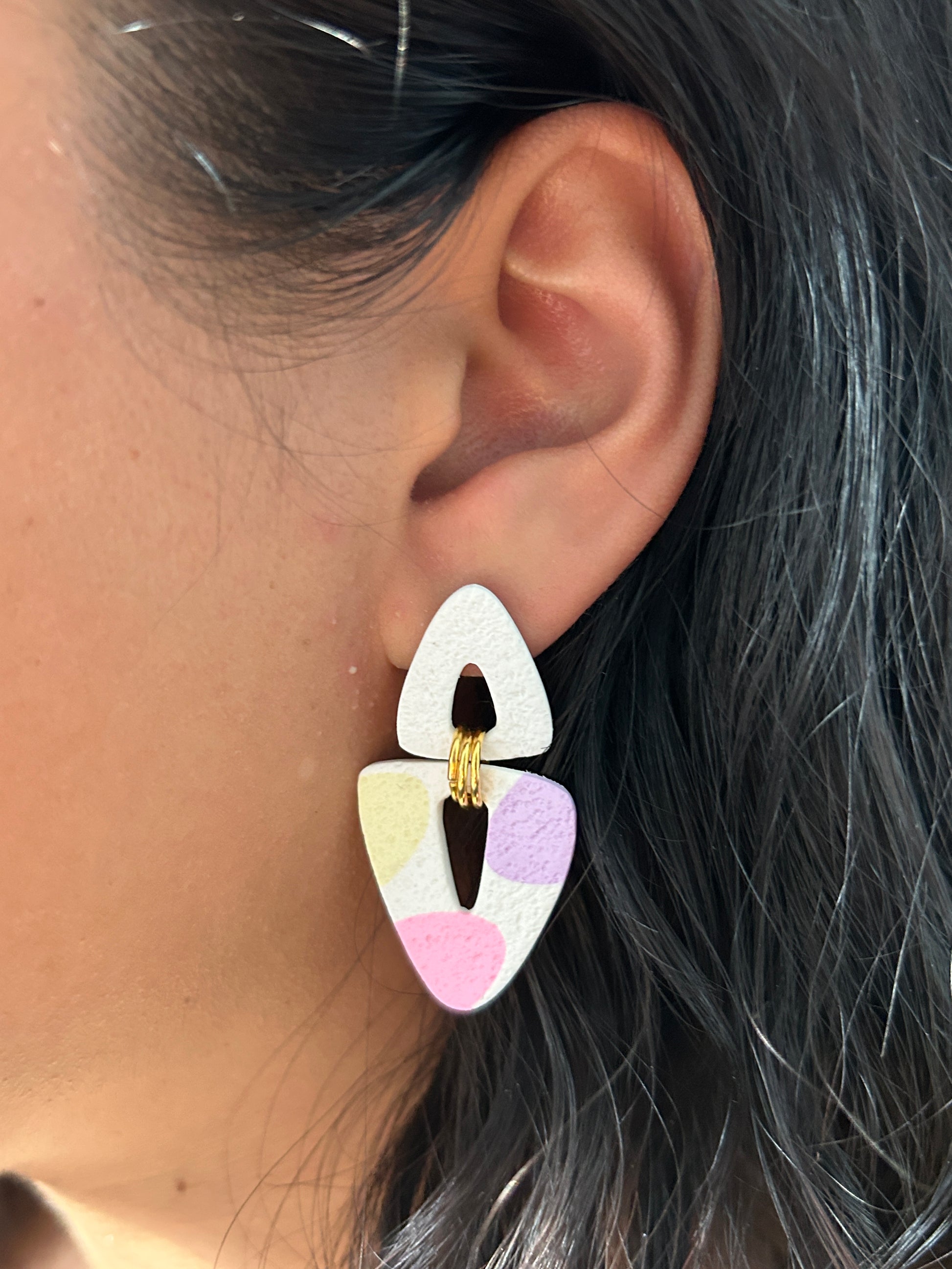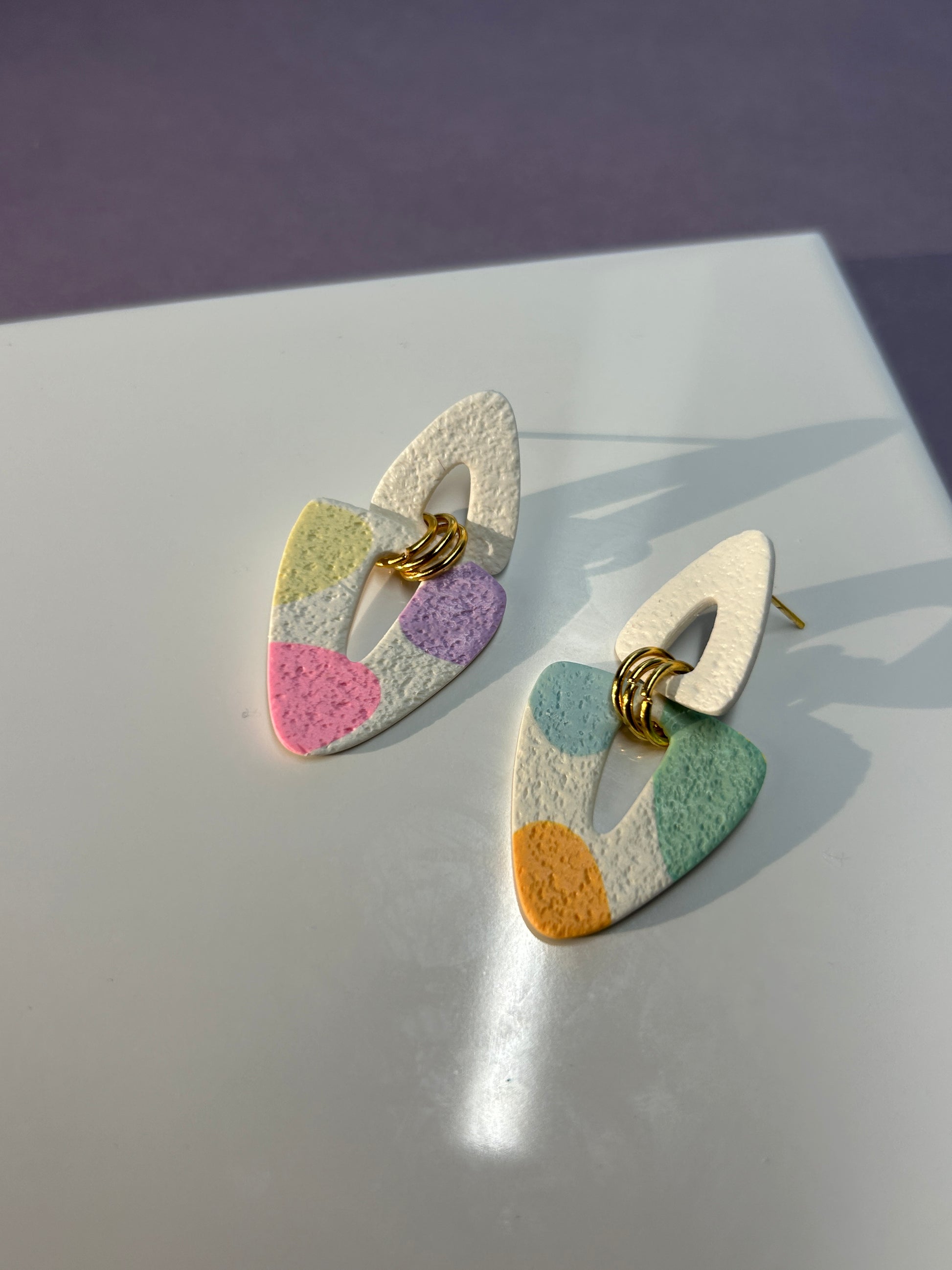 Say hello to fun with the Pastel Party Collection — a playful mix of white and pastel hues in bold, joyful shapes. From large dotted designs to colorful hoops-on-hoops, each pair is a celebration of color and creativity. Lighthearted and full of movement, these earrings are perfect for adding a pop of charm to your spring and summer outfits.