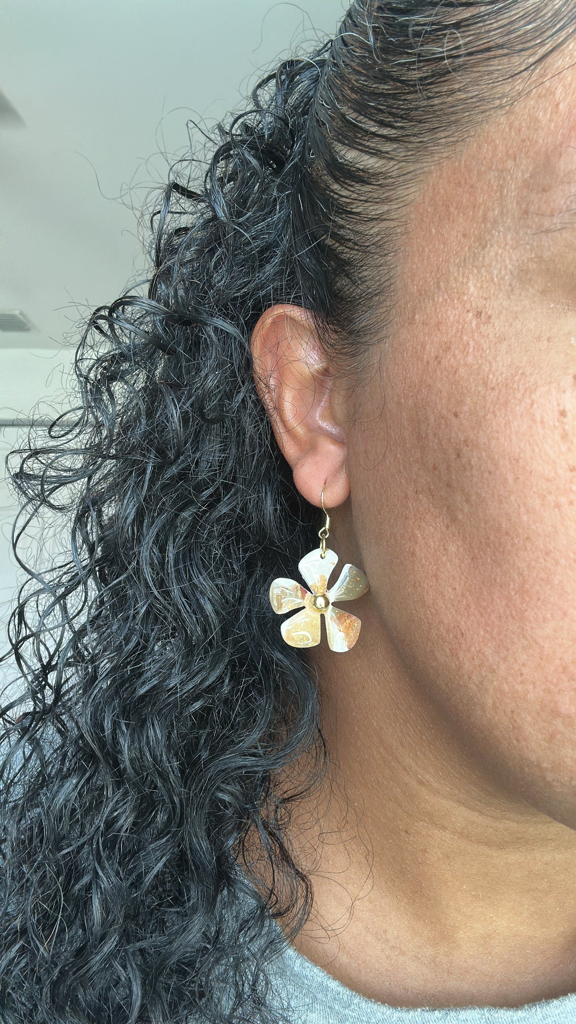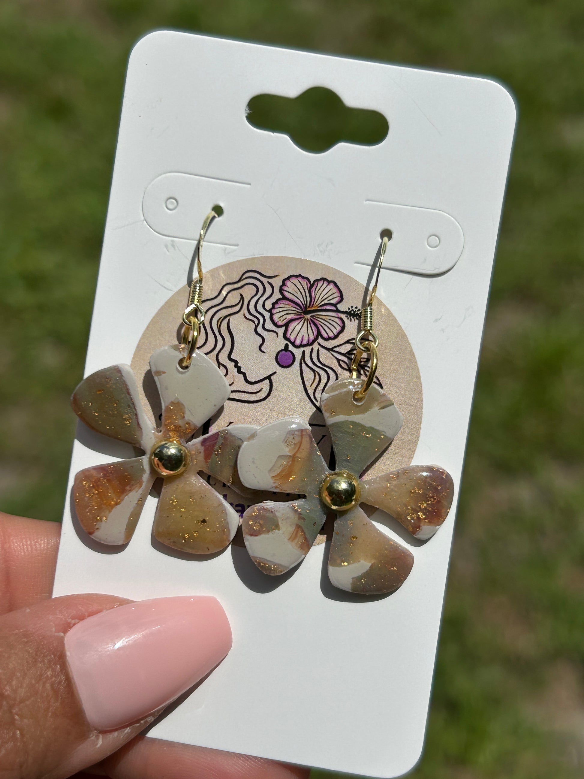 The Pearly Golds Collection was created to embrace the warmth of autumn while still holding onto the glow of summer. Featuring rich tones of terracotta, olive, crème, burgundy, and shimmering gold, these earrings carry the essence of changing seasons. Accents of pearl, rose gold, and silver bring a soft elegance, while touches like delicate beads, island-inspired shapes of Puerto Rico, and the bold red hibiscus honor both nature and culture.