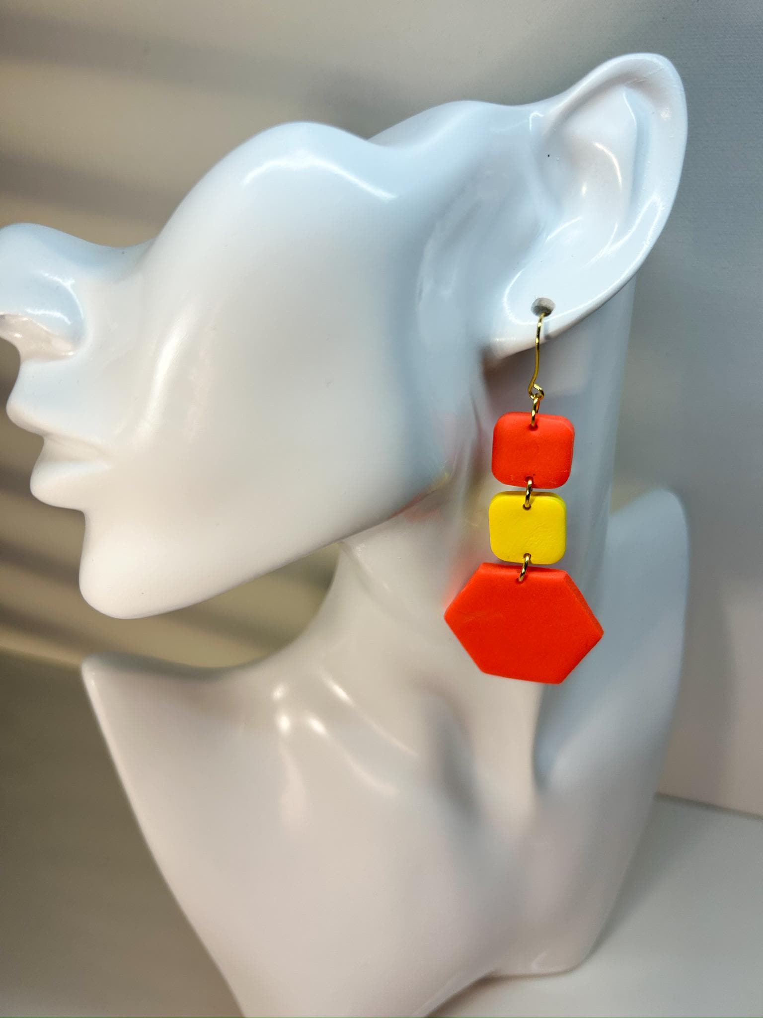 Add a burst of vibrant energy to your style with these bold, bright orange, yellow, and raspberry red polymer clay earrings! Perfect for those who love to make a statement, these eye-catching, handcrafted earrings radiate with playful, joyful colors. Lightweight yet impactful, each pair is a limited-edition piece designed to bring sunshine and excitement to any outfit. Brighten your day with these one-of-a-kind, color-packed earrings!