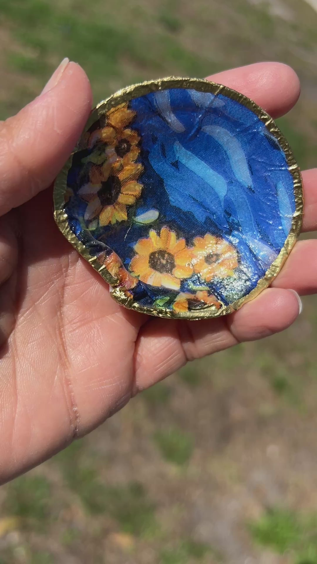 Introducing my Shell Trinket Dishes handcrafted from real clam shells, each dish is decorated with beautiful decorative napkins and outlined in gold for an elegant touch. Available in various sizes, these unique trinket dishes are perfect for holding jewelry, treasured keepsakes, or simply adding a coastal charm to your space. A stunning blend of nature and artistry!
