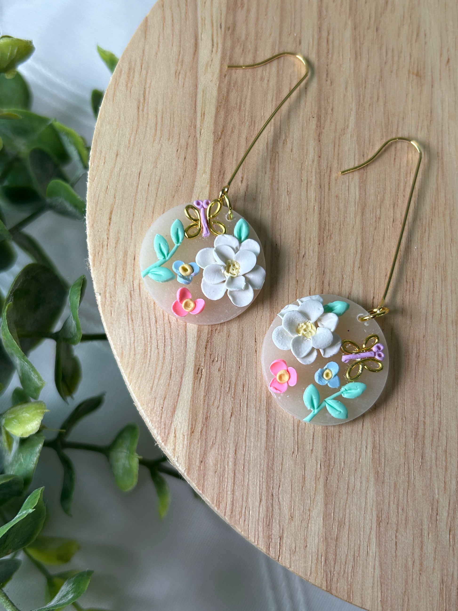 Introducing my Spring Bloom & Glow. These white translucent earrings feature soft spring floral designs in delicate seasonal colors, capturing the fresh, airy feeling of springtime. Each pair is handcrafted with care, allowing the florals to subtly shine through for an elegant, glowing finish. Light, feminine, and perfect for adding a graceful touch to your spring wardrobe.