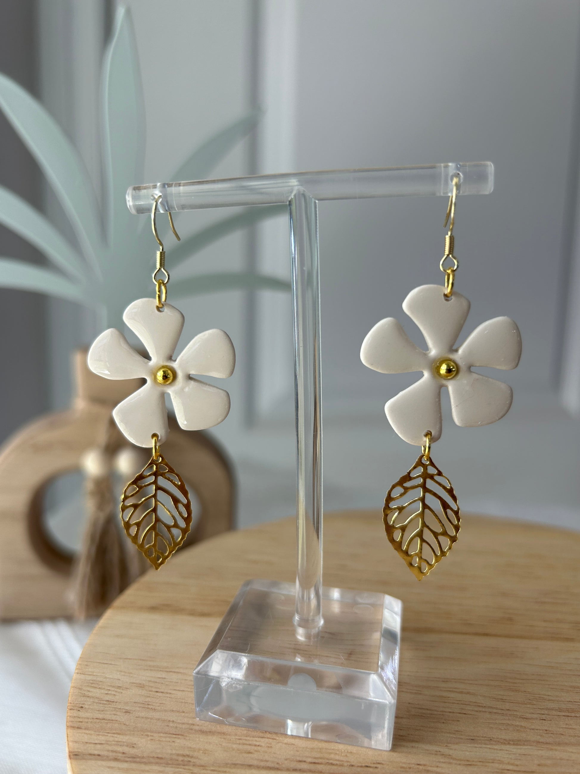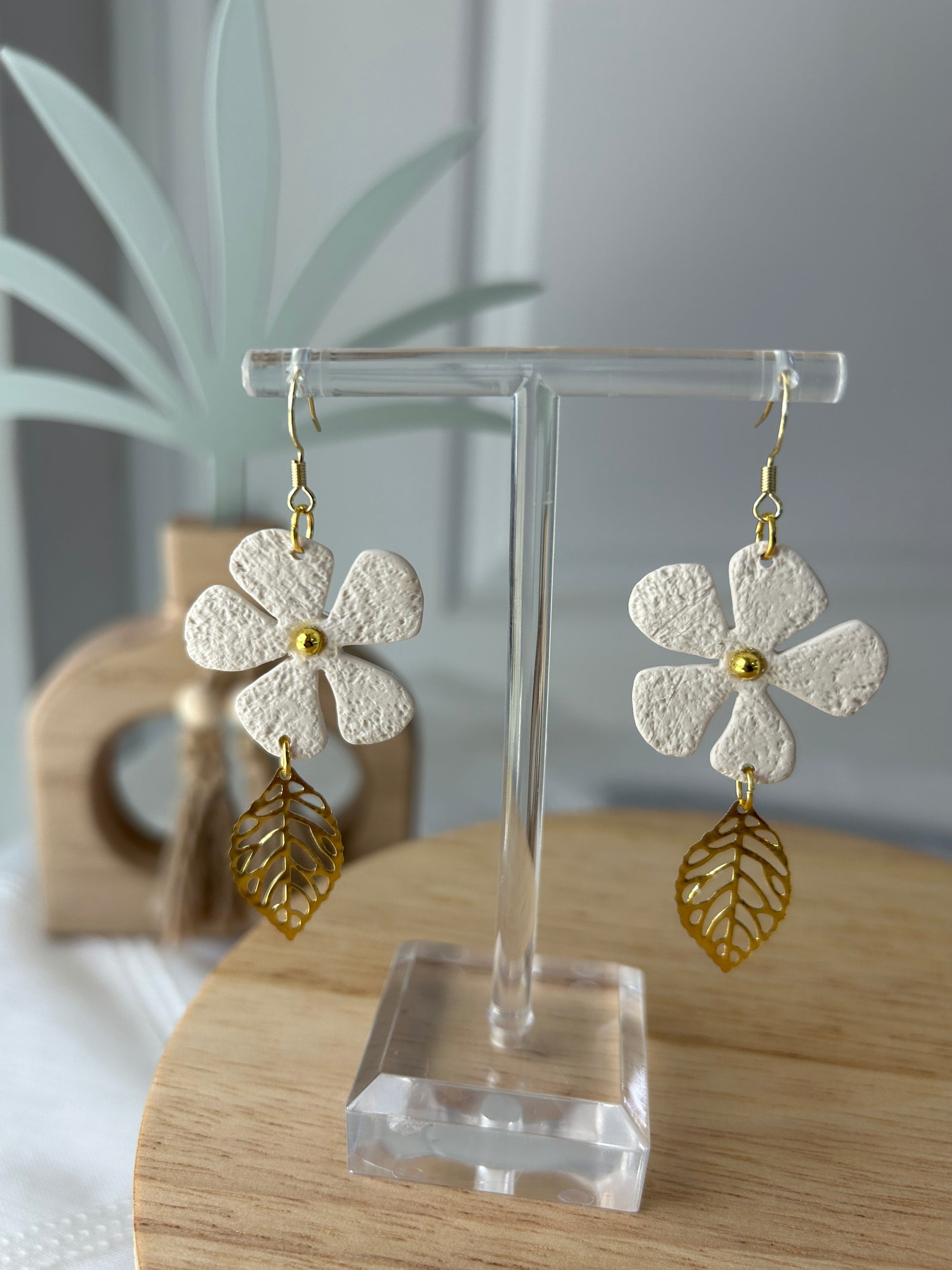 Introducing my Spring Neutral Bloom Collection,. A soft, earthy blend of neutral flower-shaped earrings in shades of cream—each designed with natural beauty in mind. Some pieces feature delicate gold leaves, wooden elements, touches of warm copper, or a unique sand-like texture for added depth and charm. Whether you're dressing up or keeping it casual, these earrings bring timeless elegance with a grounded, organic feel.