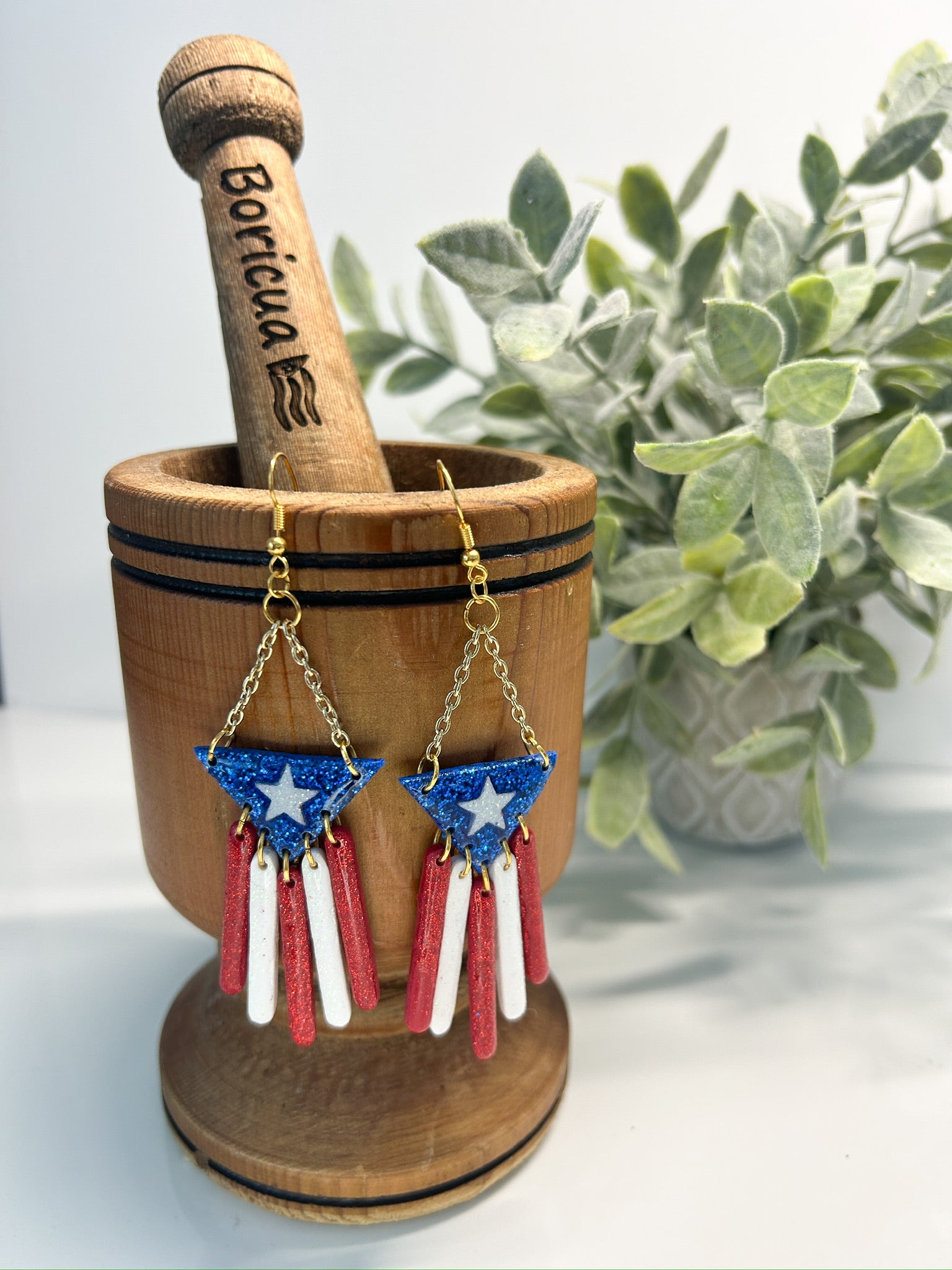 Celebrate your heritage in style with these stunning Puerto Rico flag inspired earrings! Handcrafted with care, these earrings beautifully capture the vibrant colors and pride of the Puerto Rican. With their bold design they’re a perfect way to showcase your culture while adding a touch of festive flair to any outfit. Lightweight and unique, these limited-edition earrings are a radiant tribute to Boricua pride—wear your culture with confidence and shine!