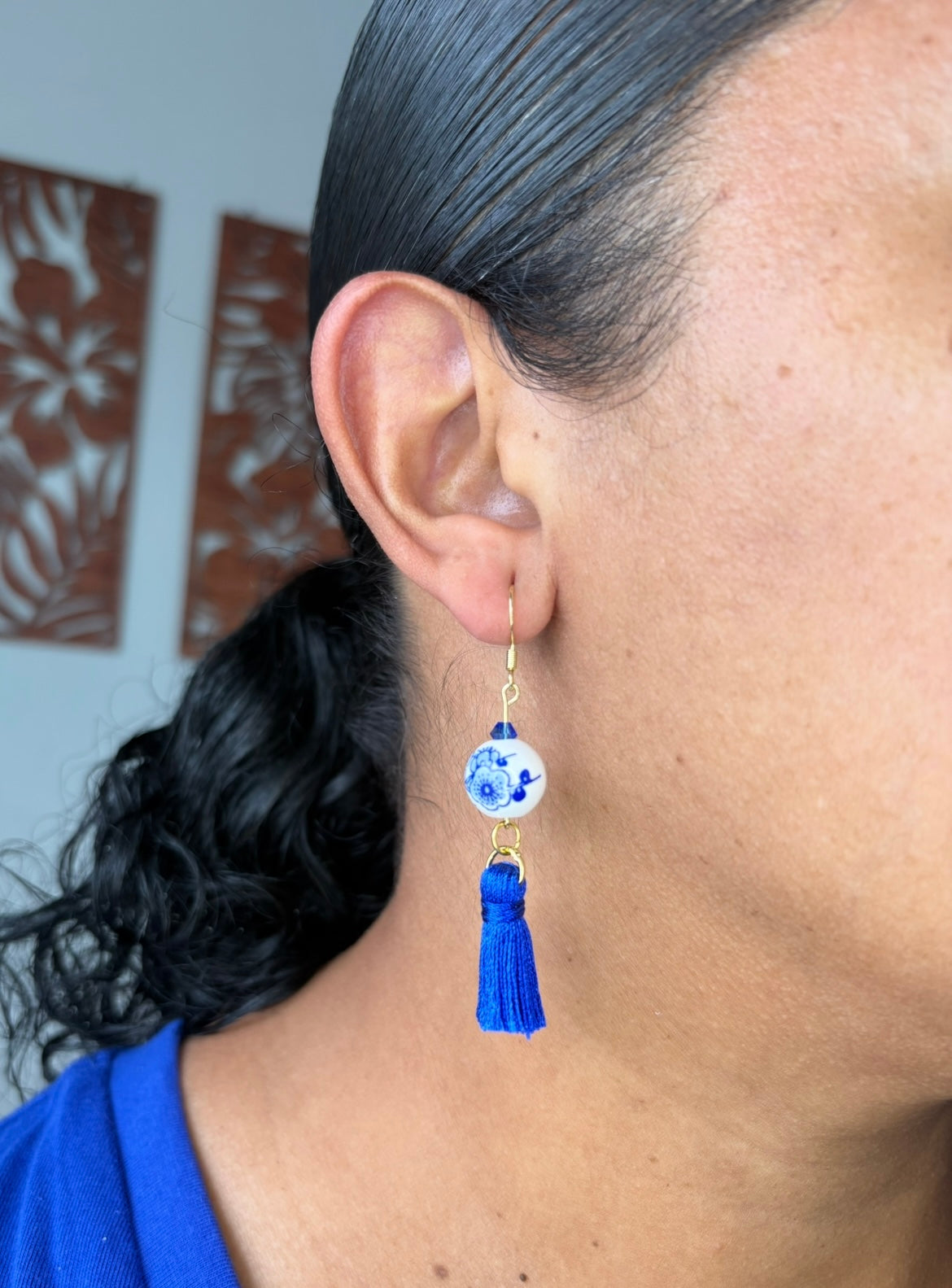 Inspired by the vibrant beauty of Mediterranean and Mexican tile art, the Talavera Collection brings timeless patterns to life through bold design and rich royal blue tones. Each pair of earrings is handcrafted with intricate tile-inspired prints and accented with delicate details like tassels, beads, and layered textures. Whether you're drawn to the elegance of classic ceramics or the warmth of cultural artistry, these pieces are designed to stand out and tell a story. Wear them to celebrate heritage, color, and craftsmanship—all in one unforgettable look.