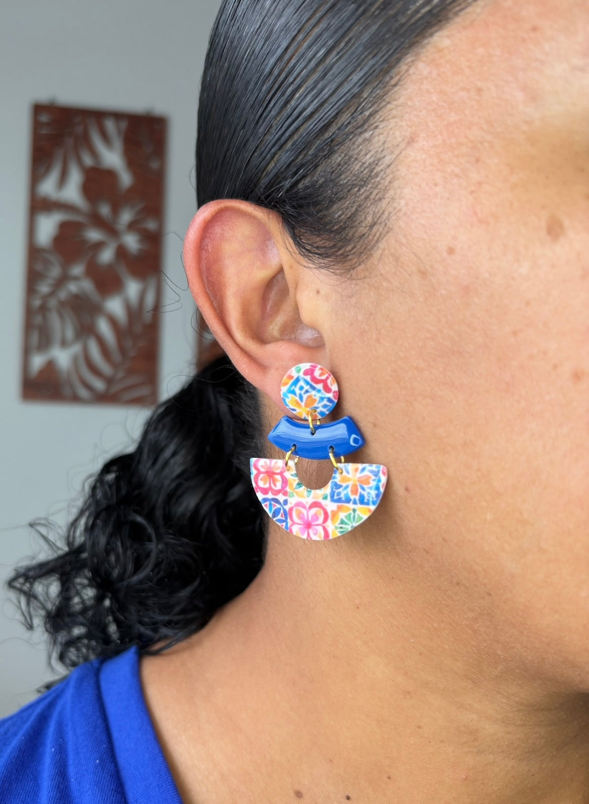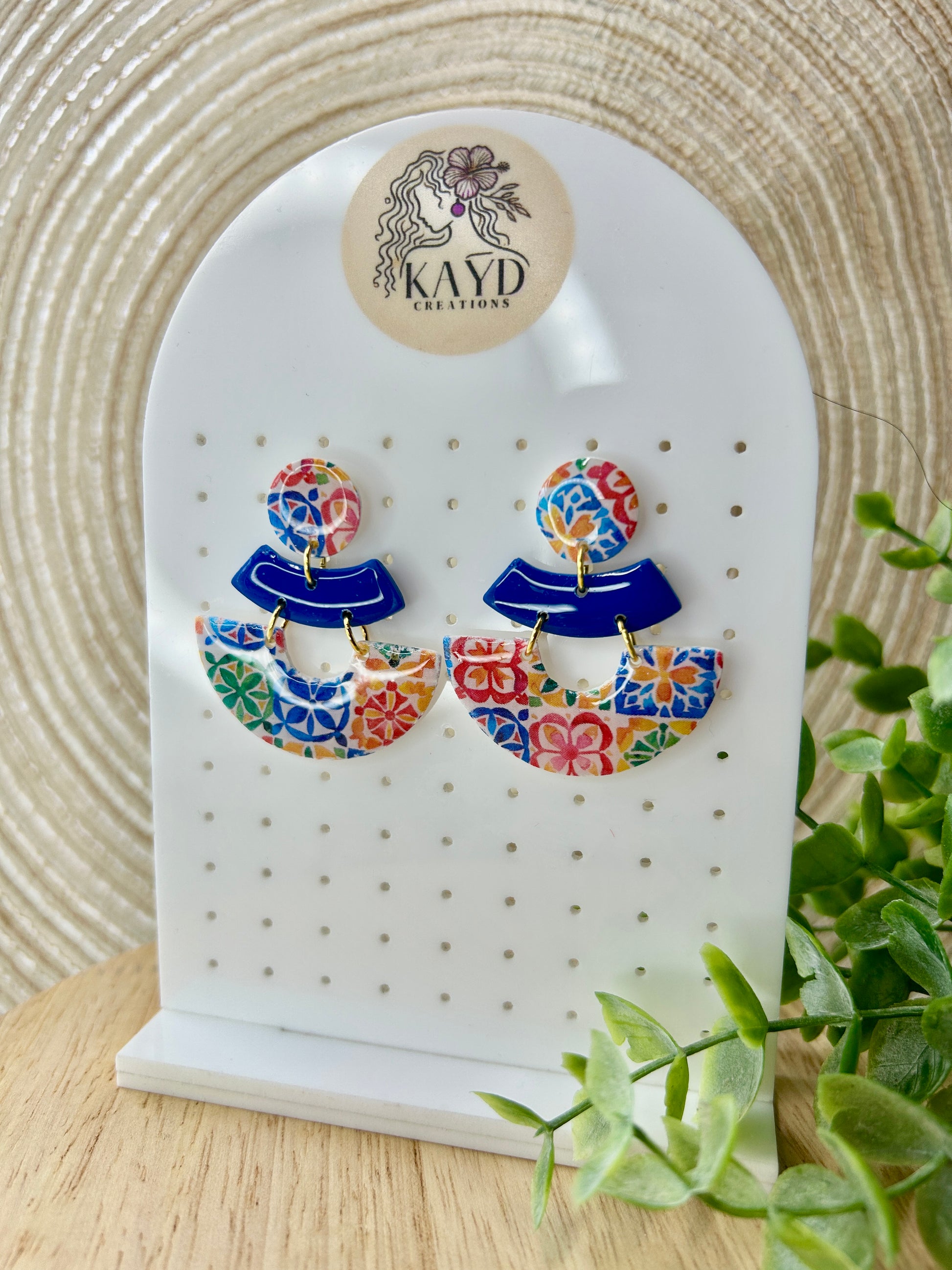 Inspired by the vibrant beauty of Mediterranean and Mexican tile art, the Talavera Collection brings timeless patterns to life through bold design and rich royal blue tones. Each pair of earrings is handcrafted with intricate tile-inspired prints and accented with delicate details like tassels, beads, and layered textures. Whether you're drawn to the elegance of classic ceramics or the warmth of cultural artistry, these pieces are designed to stand out and tell a story. Wear them to celebrate heritage, color, and craftsmanship—all in one unforgettable look.