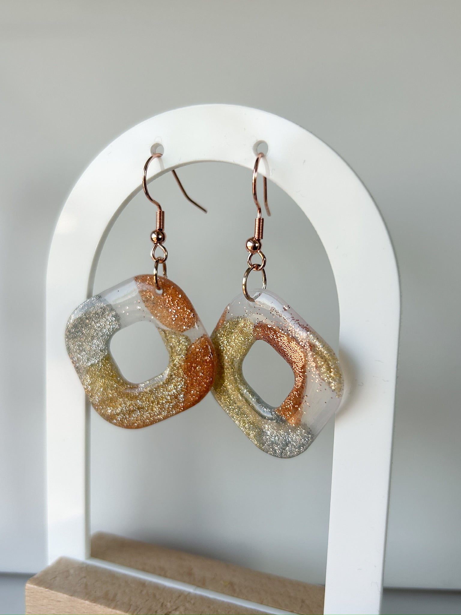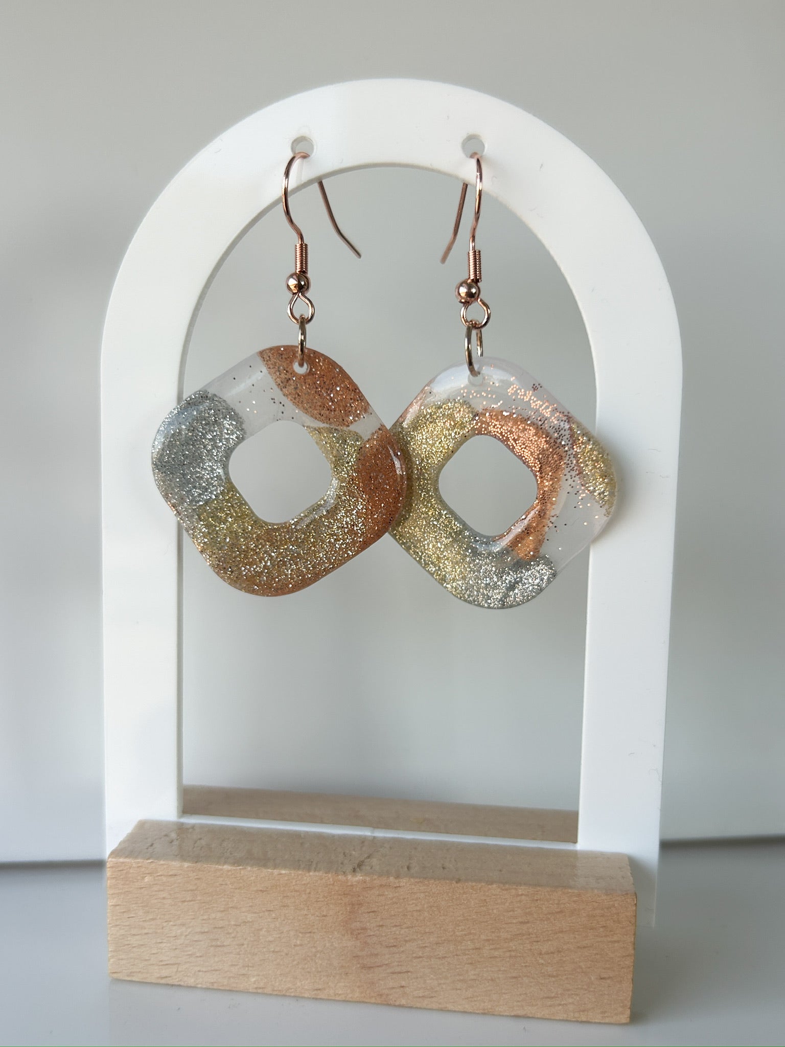 This Trio Collection is a stunning blend of gold, rose gold, silver, and translucent accents, that exudes elegance and versatility. Each piece is designed to catch the light beautifully, making them perfect for both everyday wear and special occasions. Lightweight and timeless, these earrings are the perfect balance of modern sophistication and subtle shimmer.