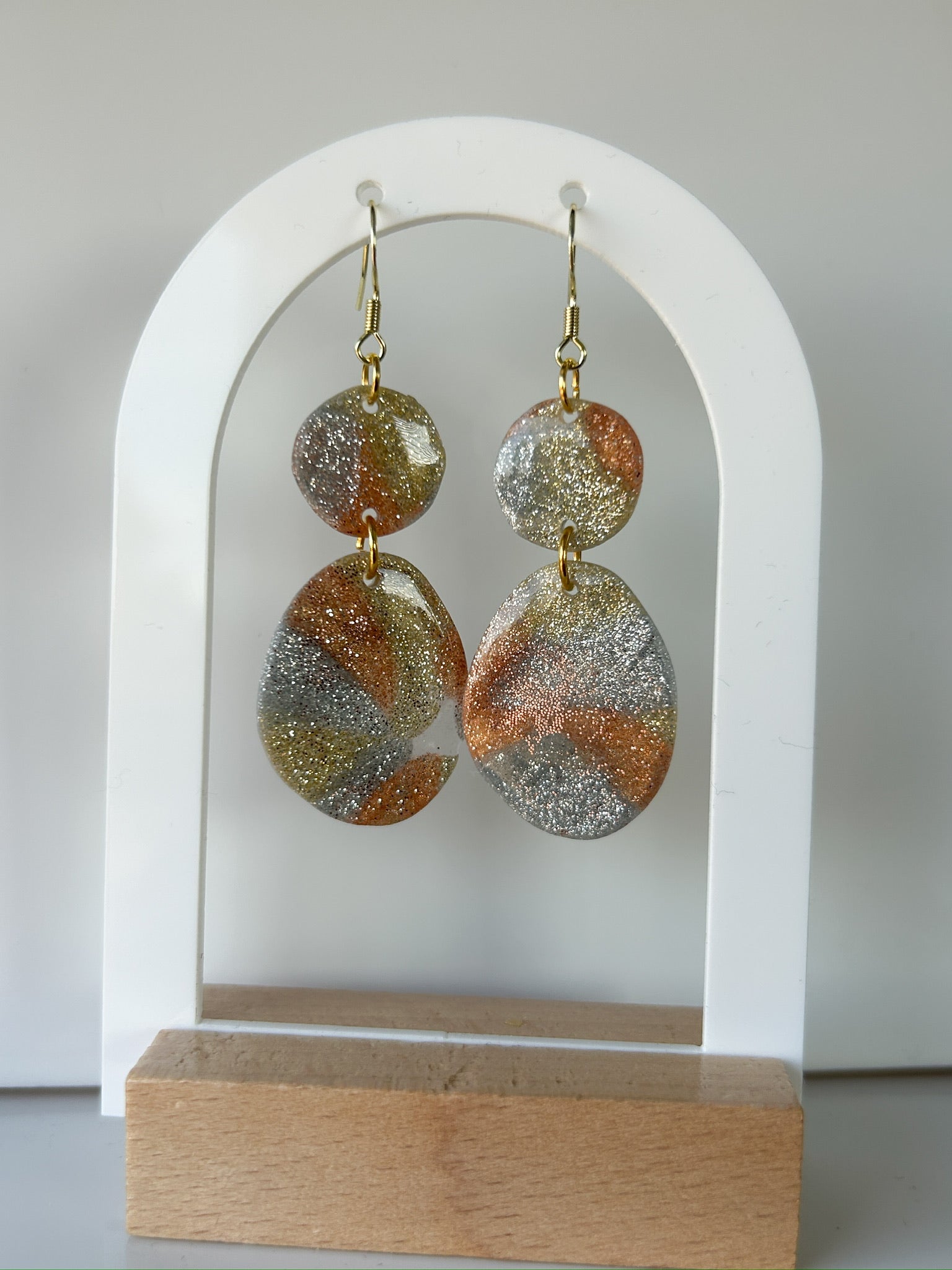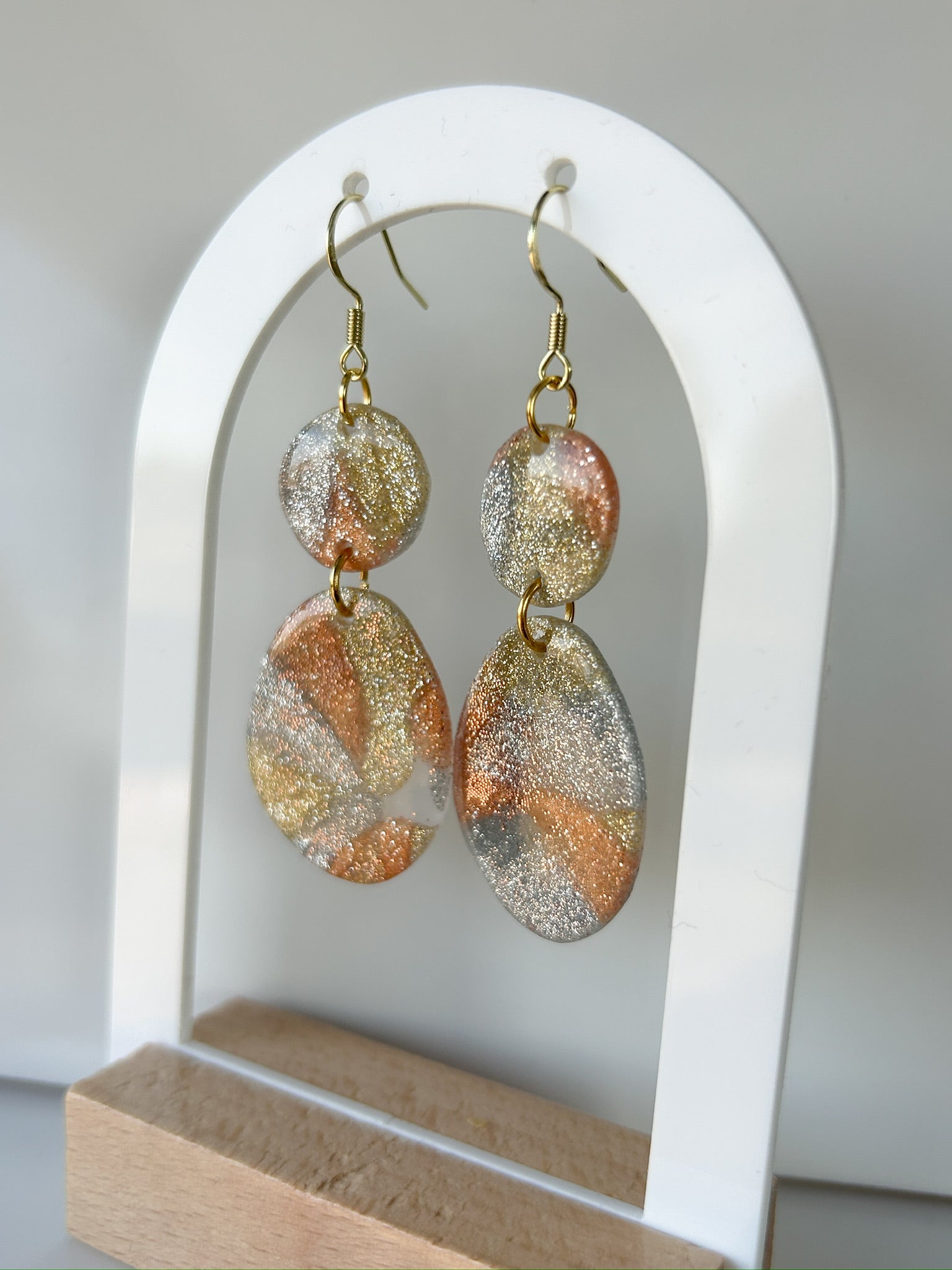 This Trio Collection is a stunning blend of gold, rose gold, silver, and translucent accents, that exudes elegance and versatility. Each piece is designed to catch the light beautifully, making them perfect for both everyday wear and special occasions. Lightweight and timeless, these earrings are the perfect balance of modern sophistication and subtle shimmer.