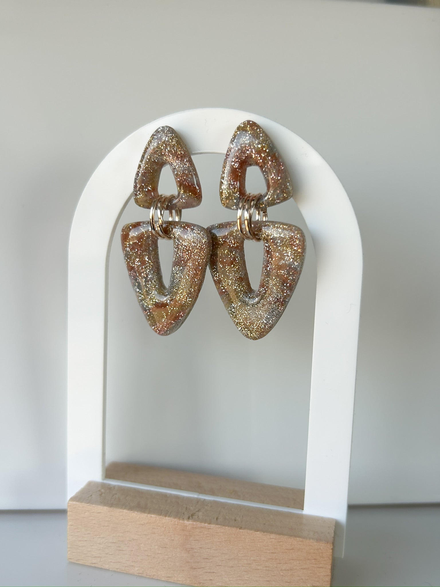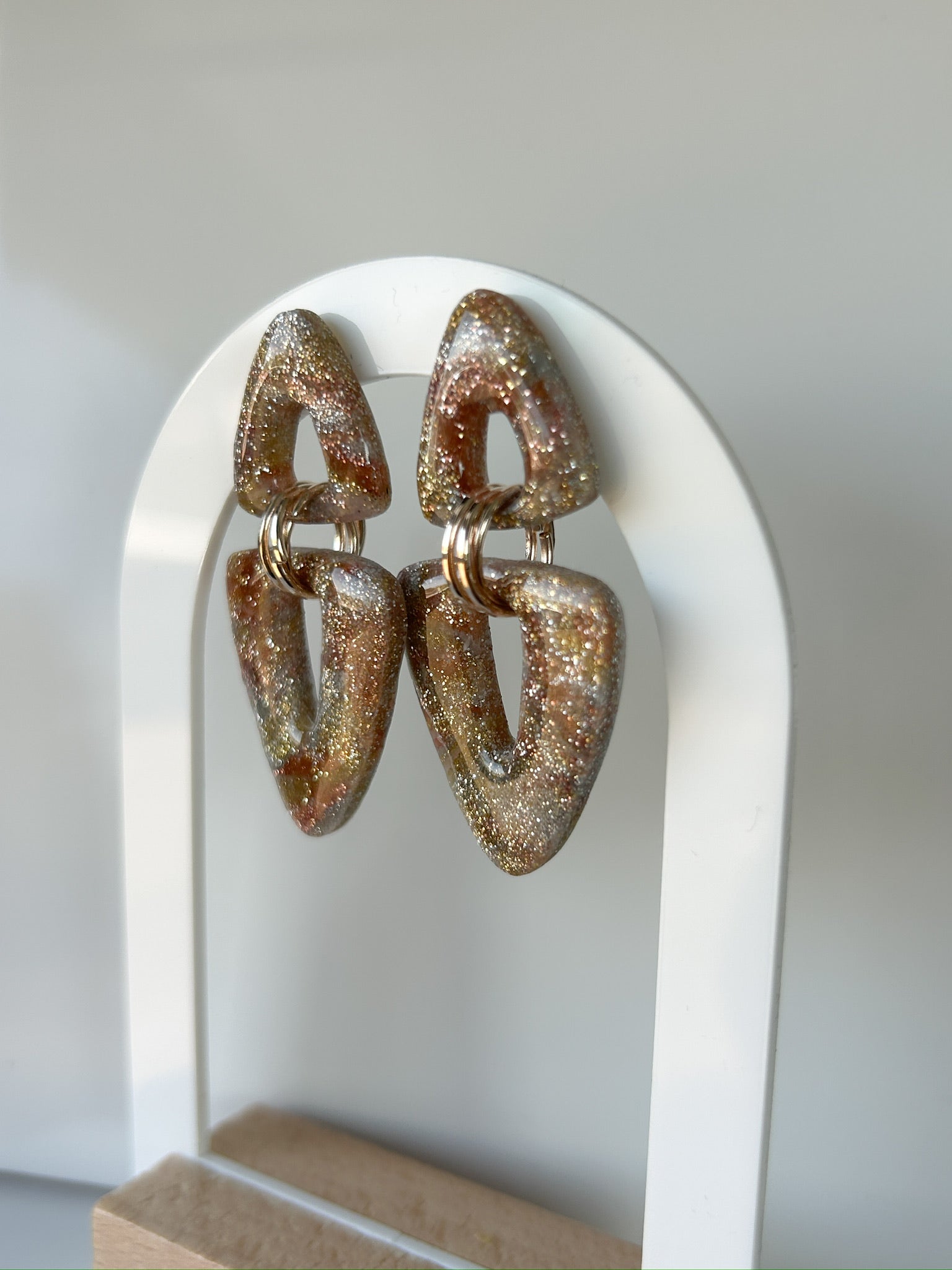 This Trio Collection is a stunning blend of gold, rose gold, silver, and translucent accents, that exudes elegance and versatility. Each piece is designed to catch the light beautifully, making them perfect for both everyday wear and special occasions. Lightweight and timeless, these earrings are the perfect balance of modern sophistication and subtle shimmer.