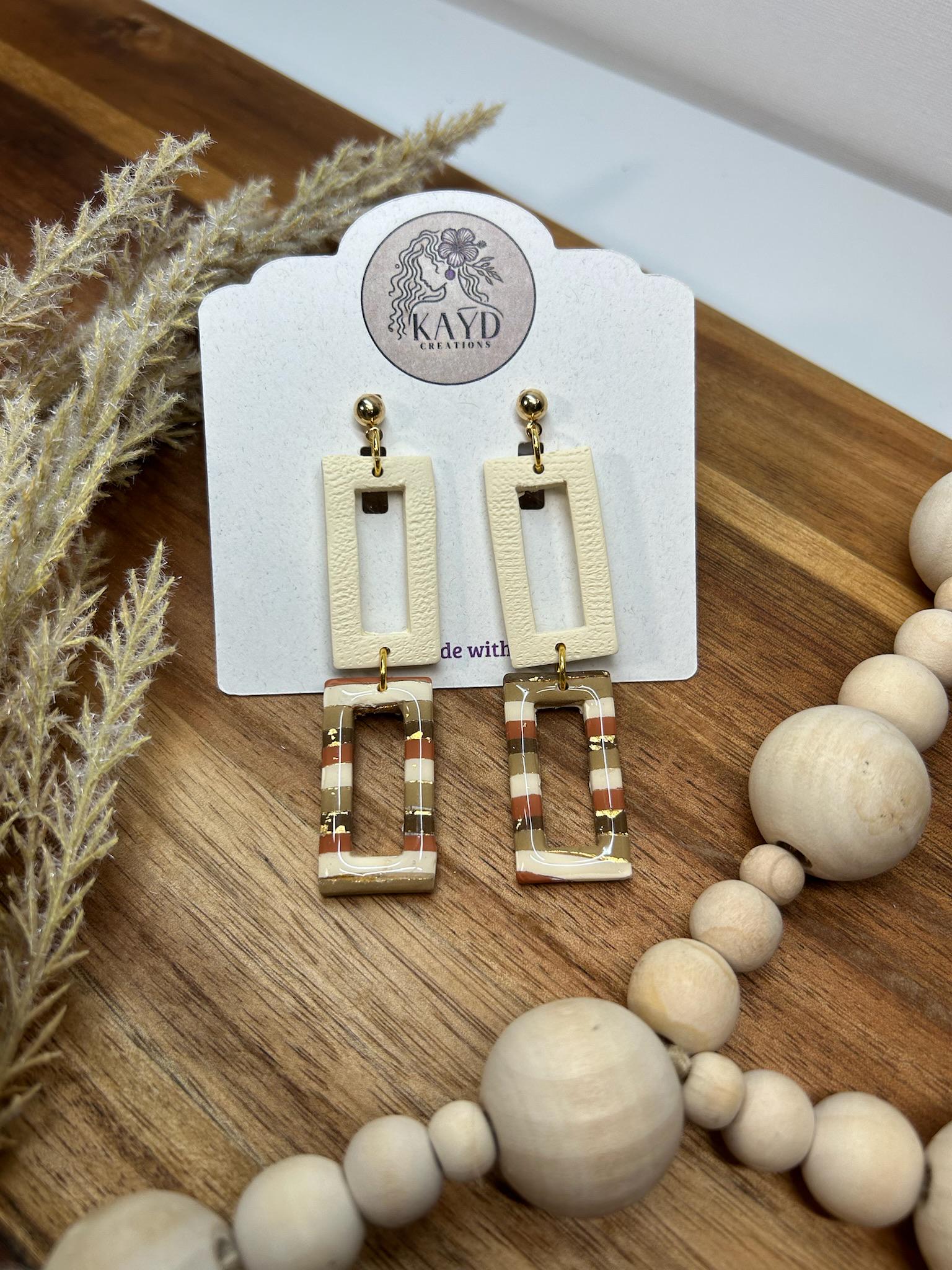 These cream, brown, terracotta, gold, and tan earrings are a stunning blend of earthy tones and natural elegance. Each piece is thoughtfully crafted to evoke warmth and sophistication, making them perfect for those who love neutral, versatile accessories. Handcrafted from polymer clay with a touch of gold shimmer, these earrings offer a timeless appeal that effortlessly complements any outfit. Lightweight and unique, they bring a subtle yet striking beauty that reflects both nature and refined style.